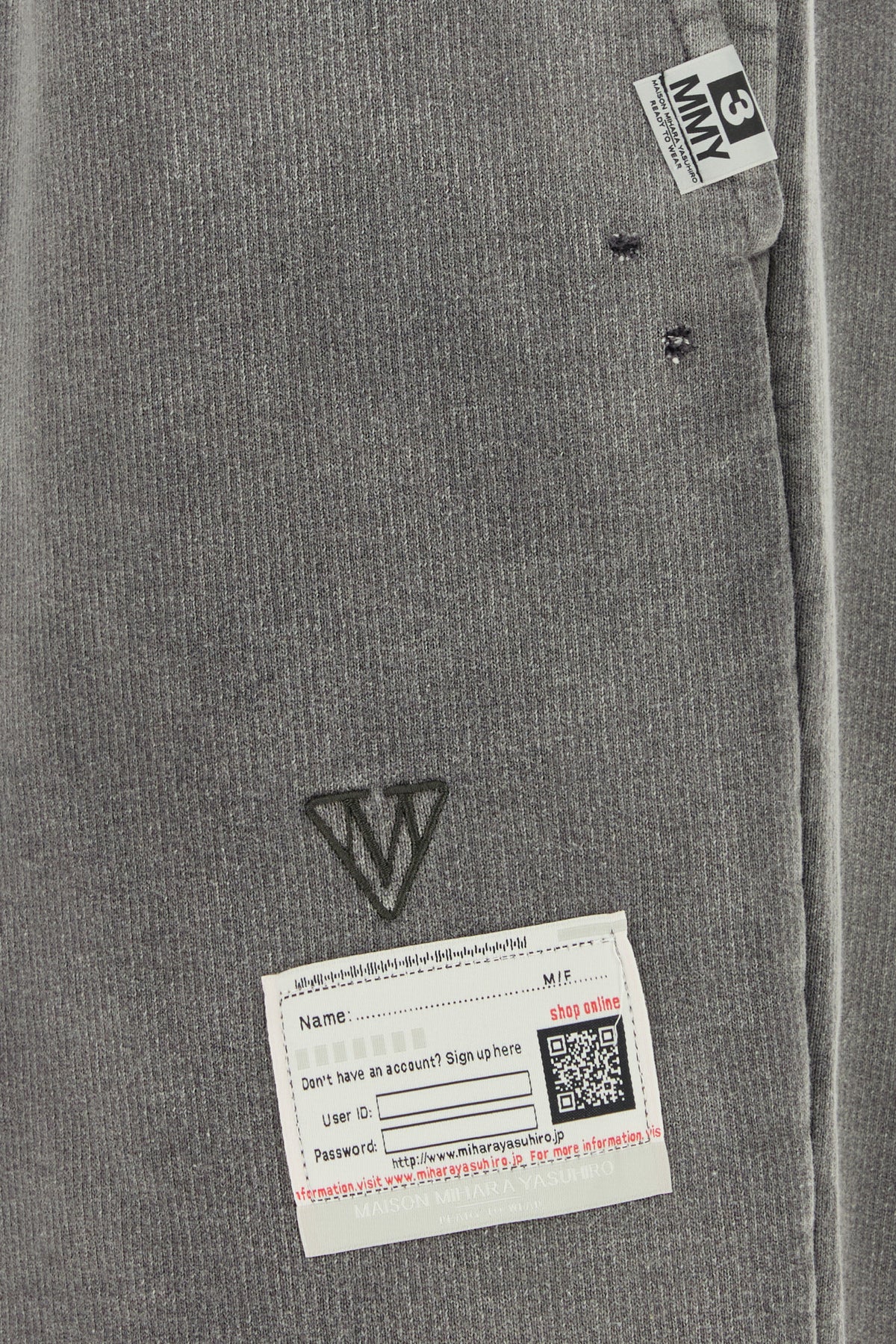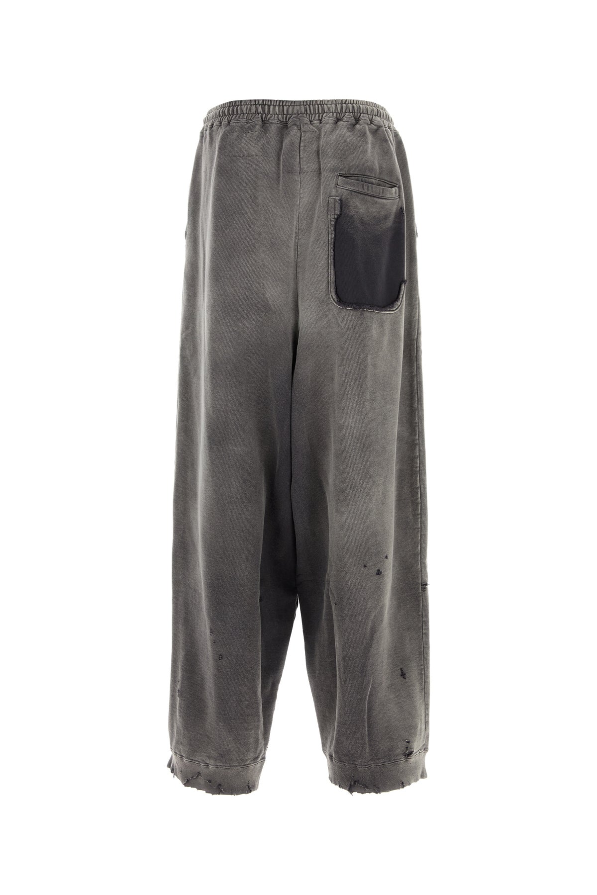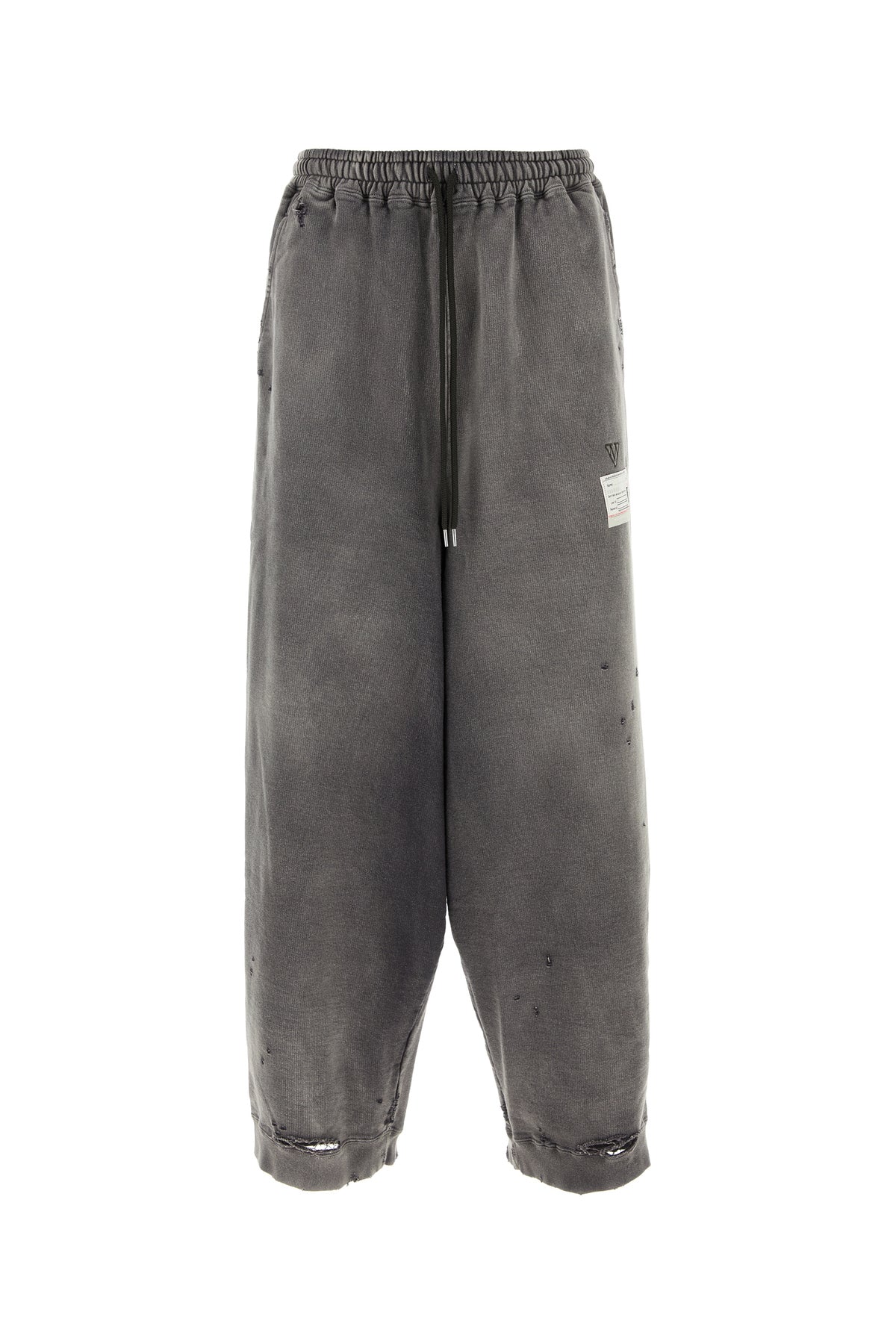 Joggers realized in stonewashed and distressed pure cotton with intentional rips characterized by embroidered logo enriched by logoed labels at the front.
