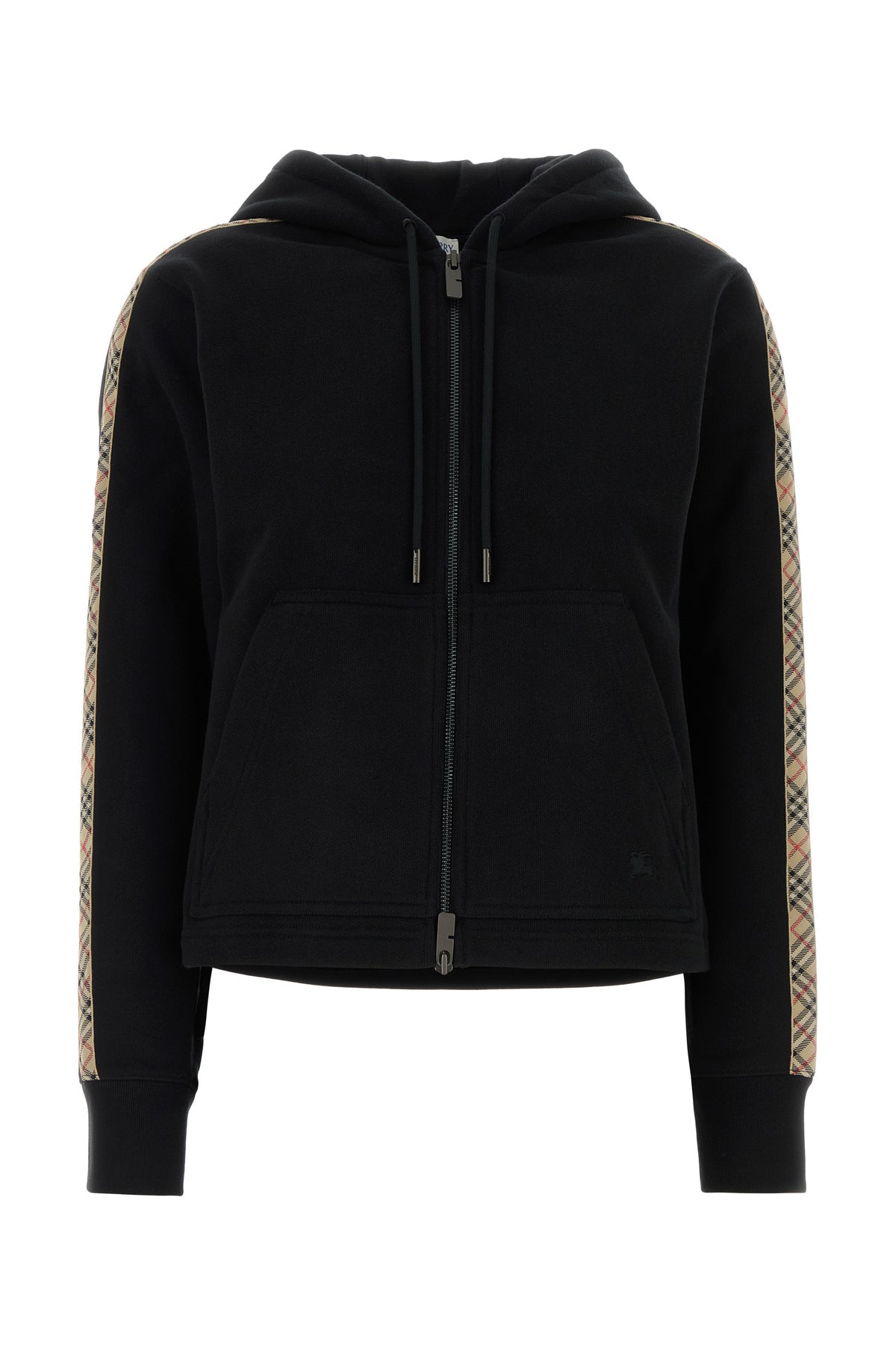 Sweatshirt realized in pure cotton characterized by Equestrian Knight embroidery on the hemline and Burberry Check embroidery on the sleeves.