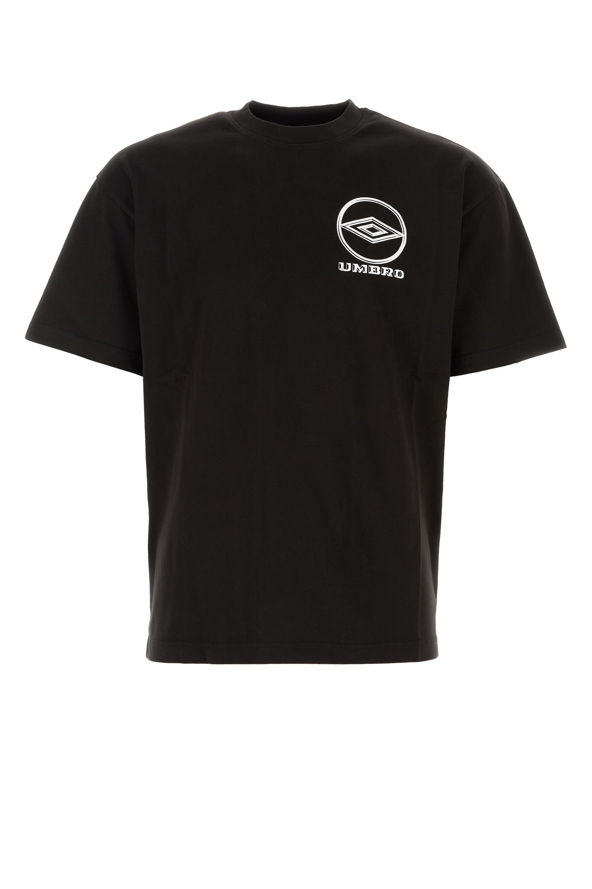 T-shirt realized in pure cotton characterized by contrasting logoed print on the chest.