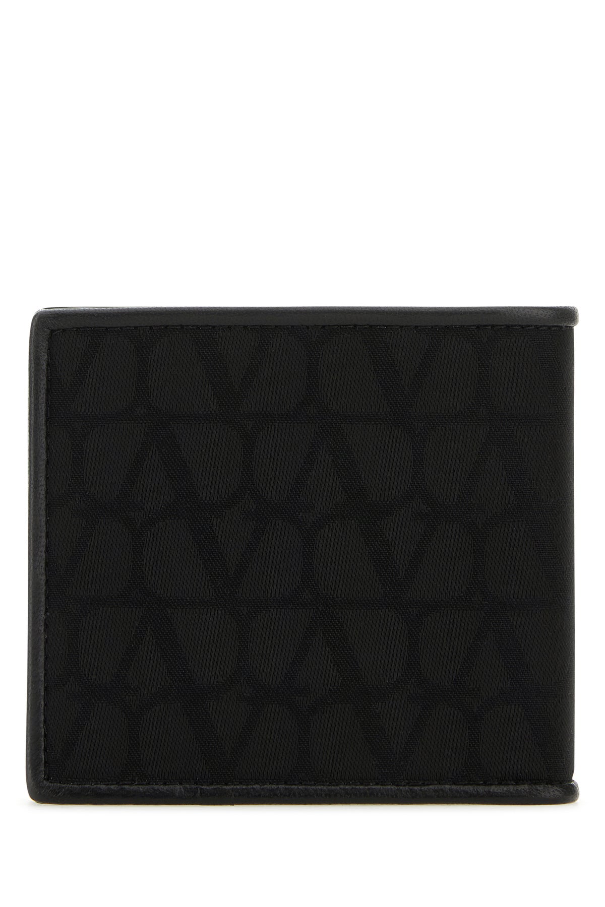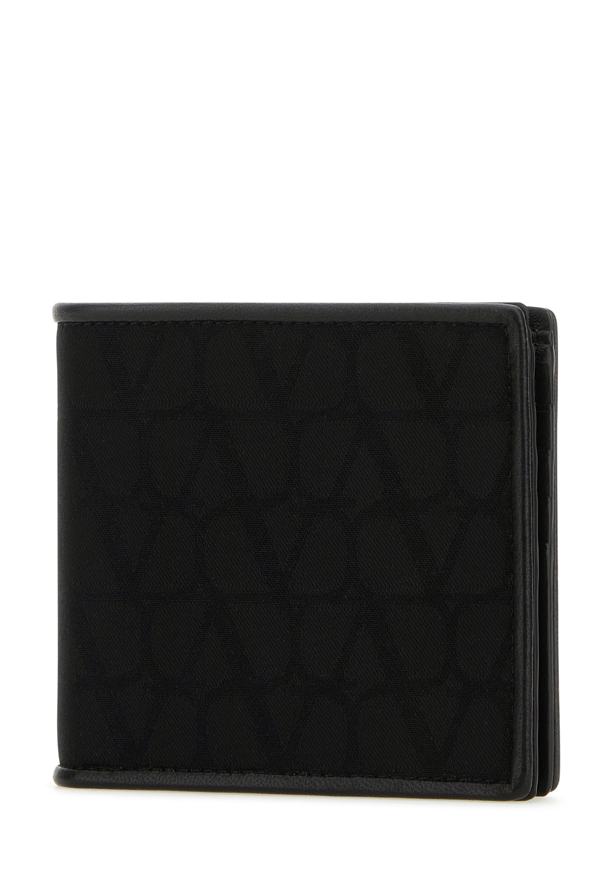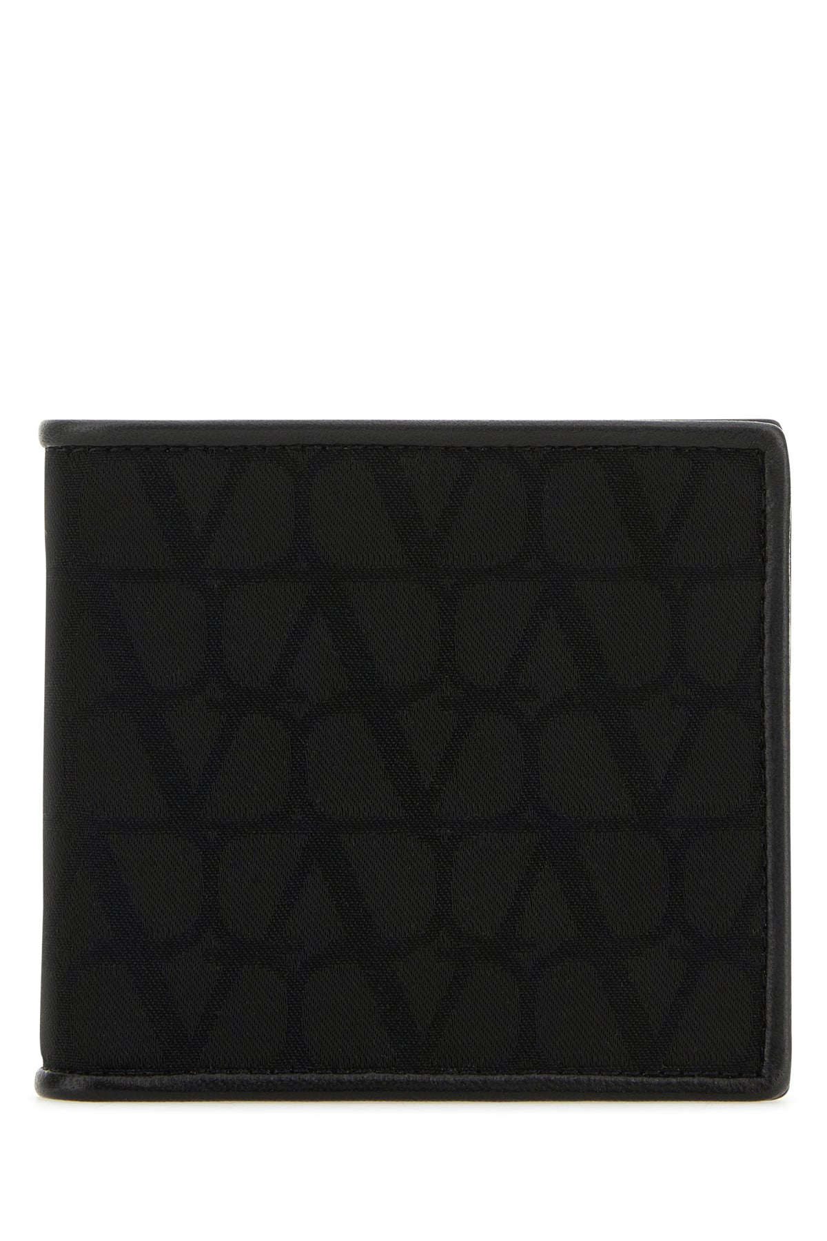 Wallet realized in fabric with leather trimmings characterized by tonal Toile Iconographe embroidery on the entire surface.