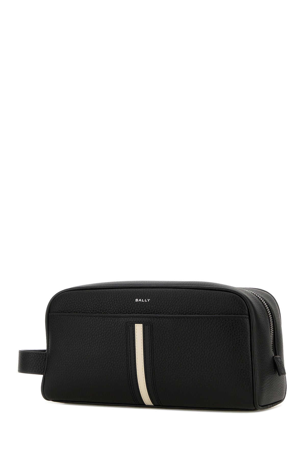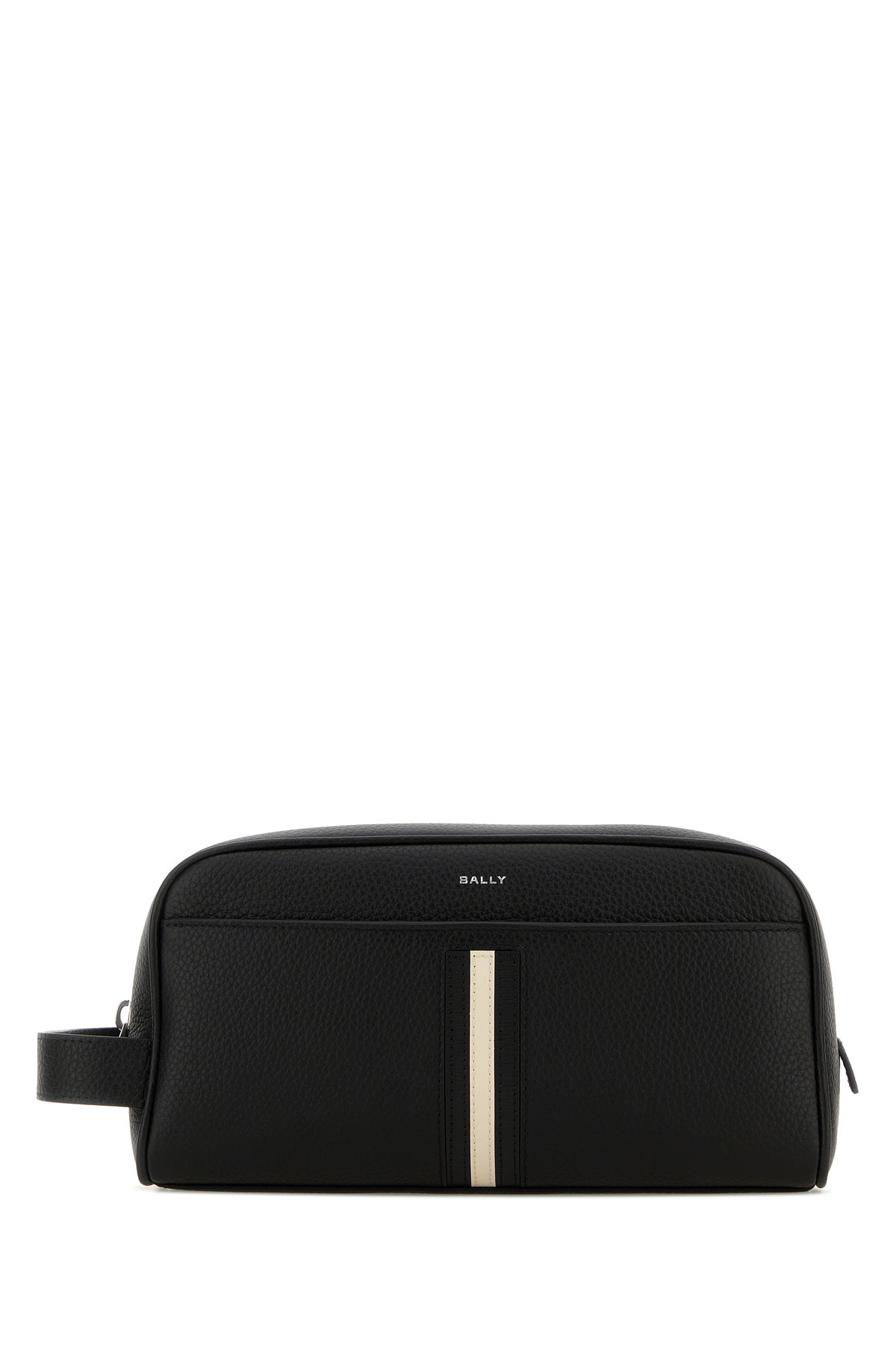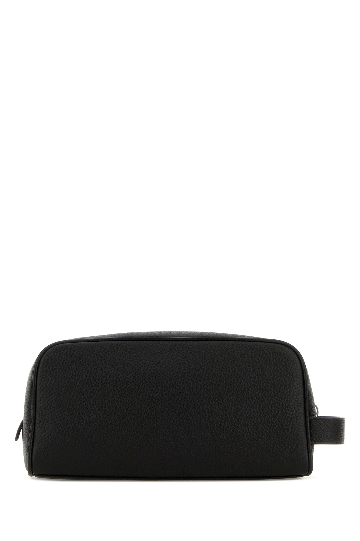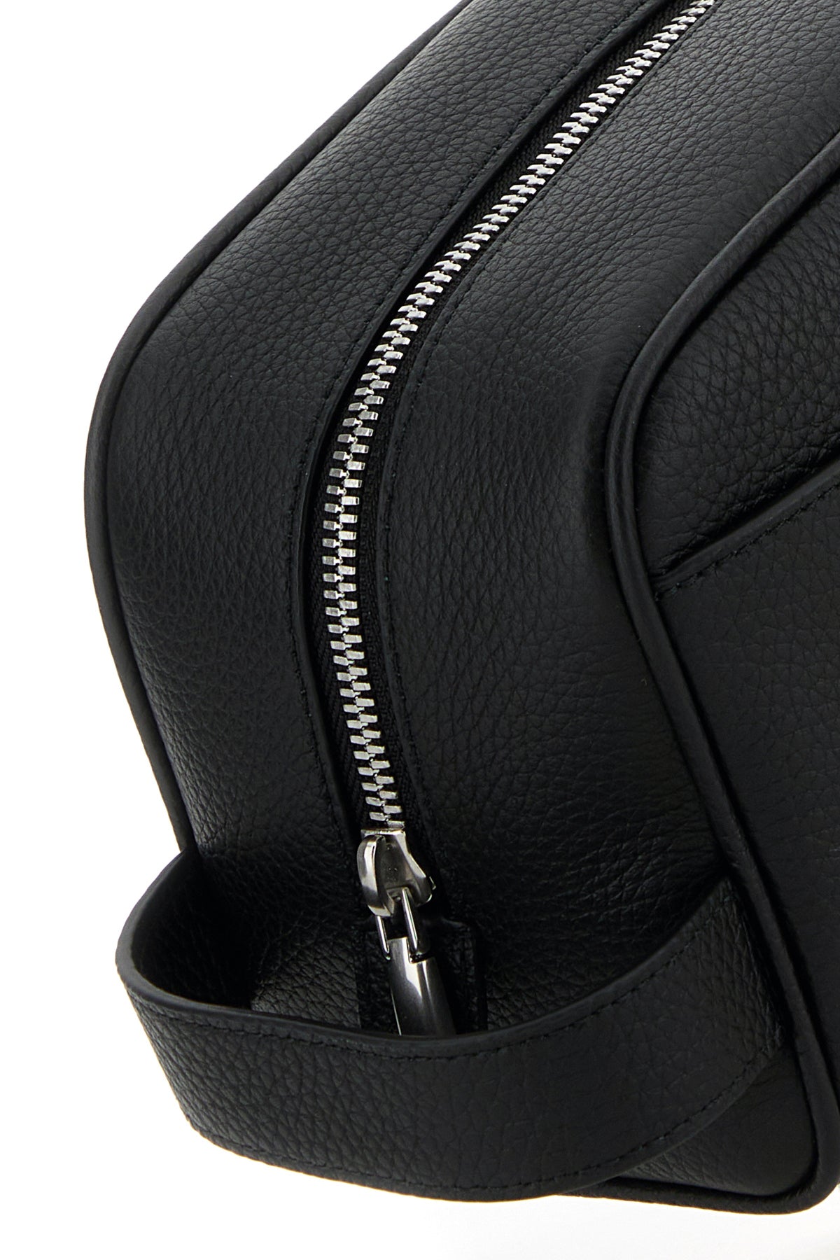 Beauty case realized in pebble leather characterized by laminated printed logo enriched by logoed patch at the front.