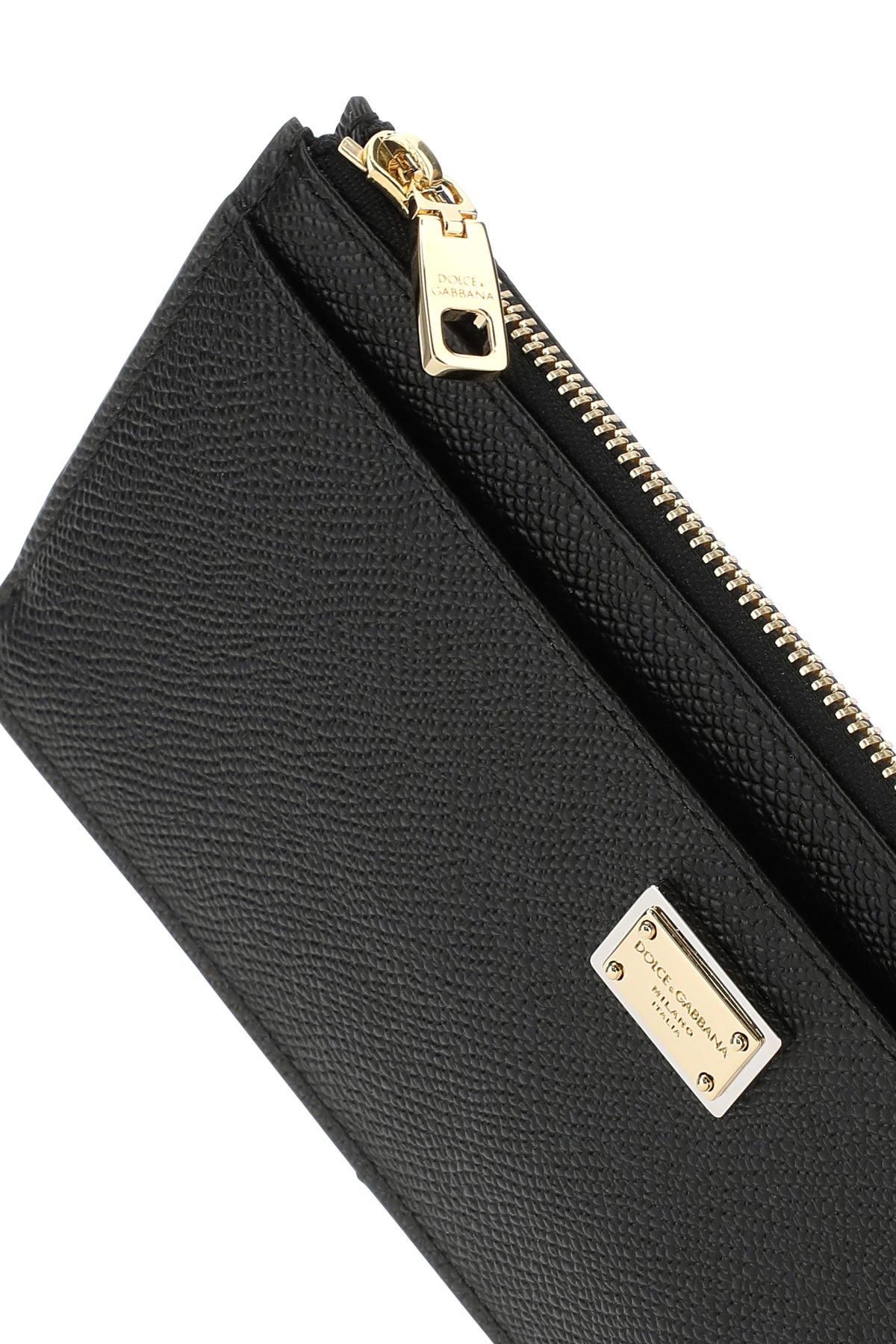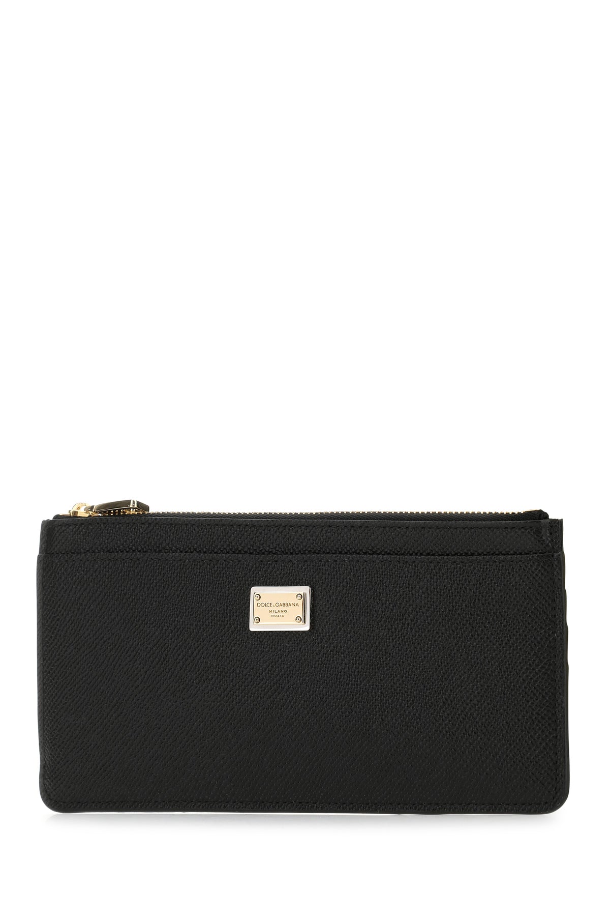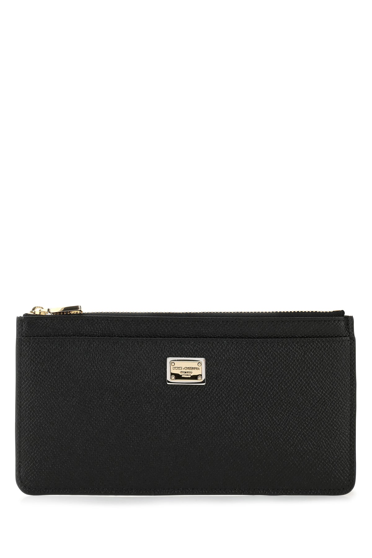 Card holder realized in grained leather enriched by logoed plate at the front.