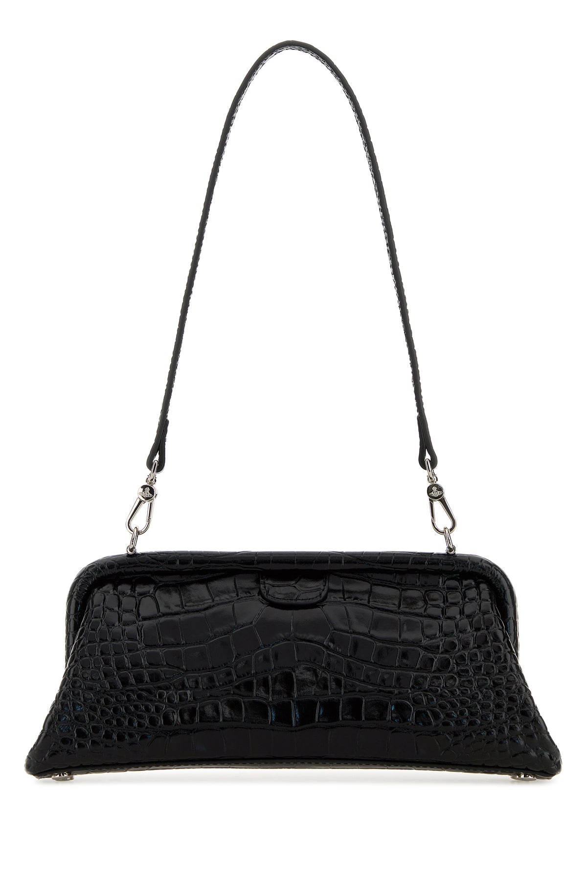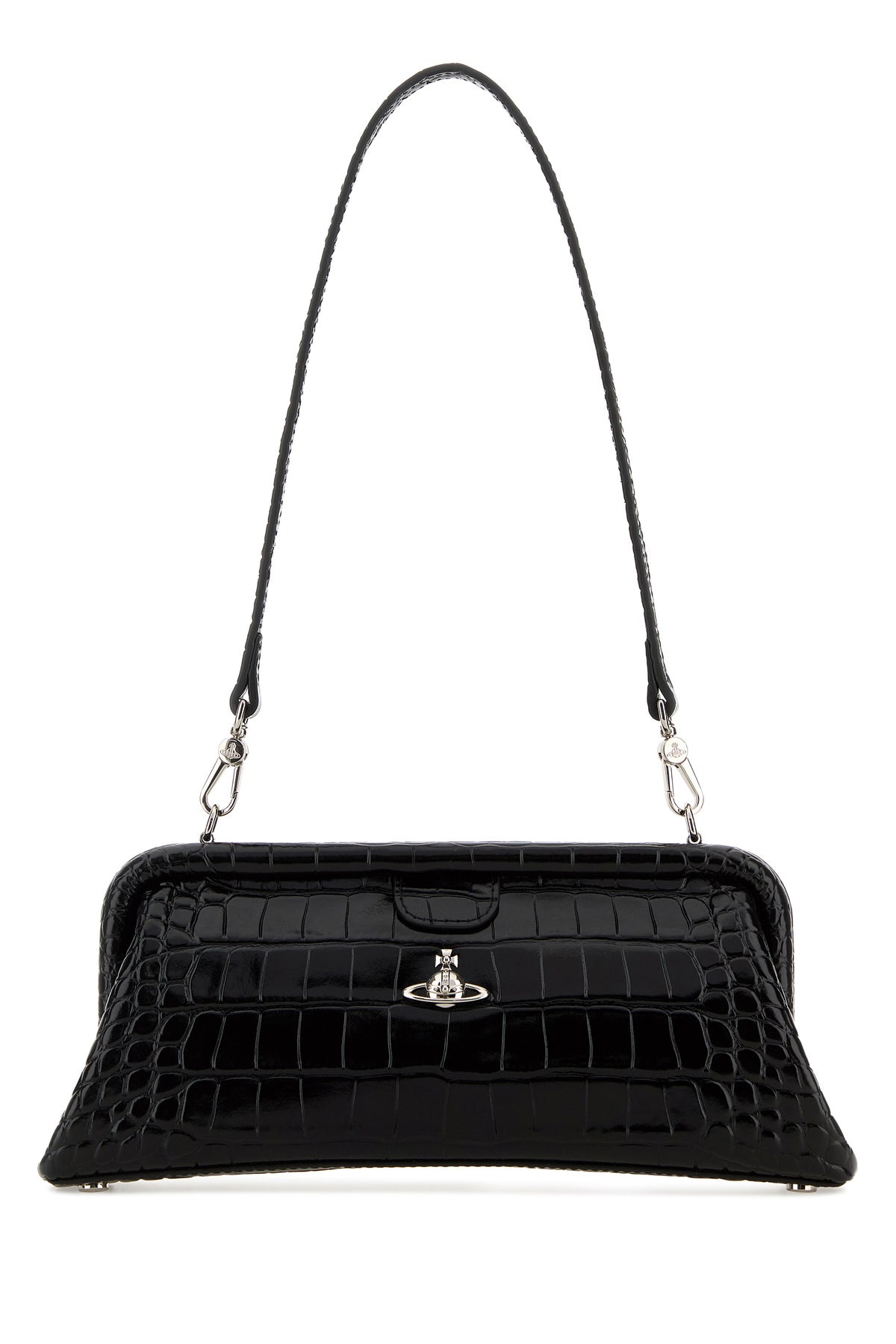 Shoulder bag realized in crocodile embossed leather enriched by Orb metal detail at the front.