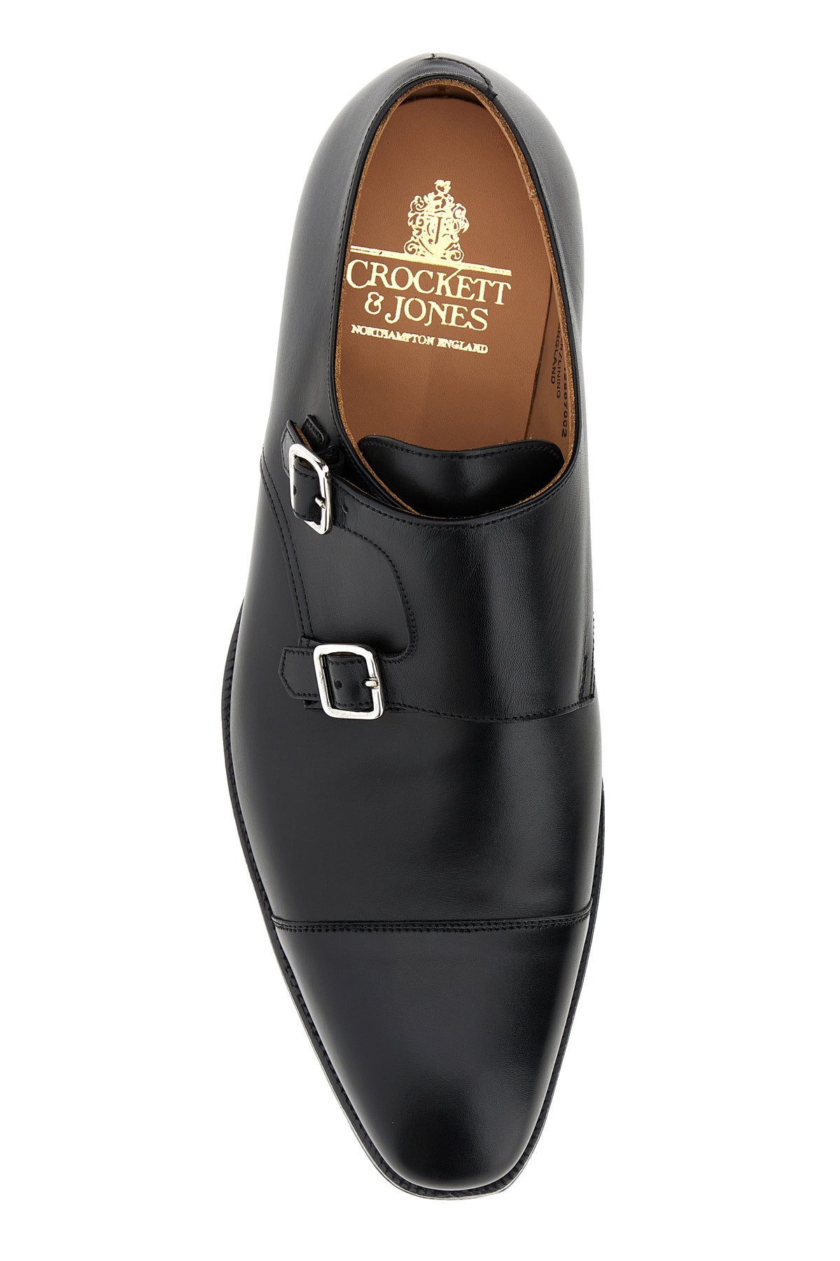 Monk strap shoes realized in smooth leather from a polished finish characterized by tapered toe.