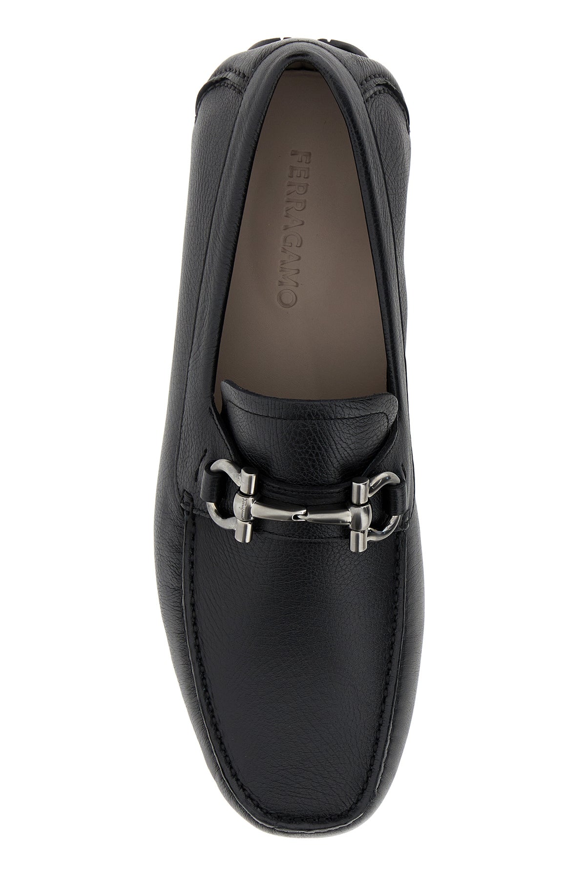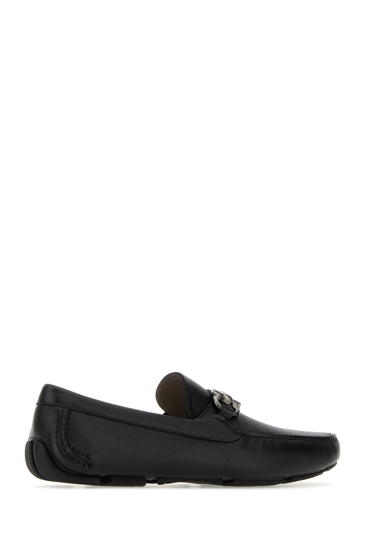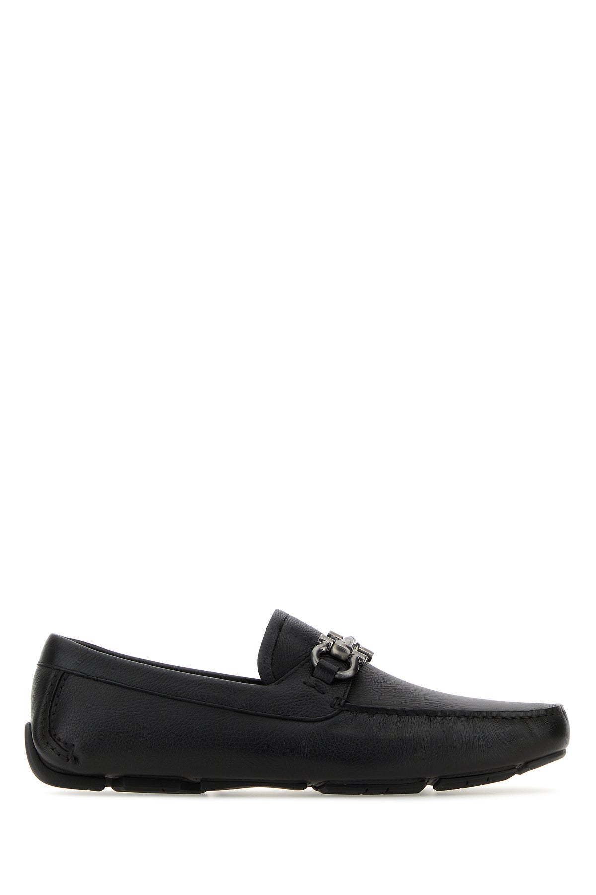 Loafers realized in pebble calf leather enriched by metal Gancini horse bit on the vamp.