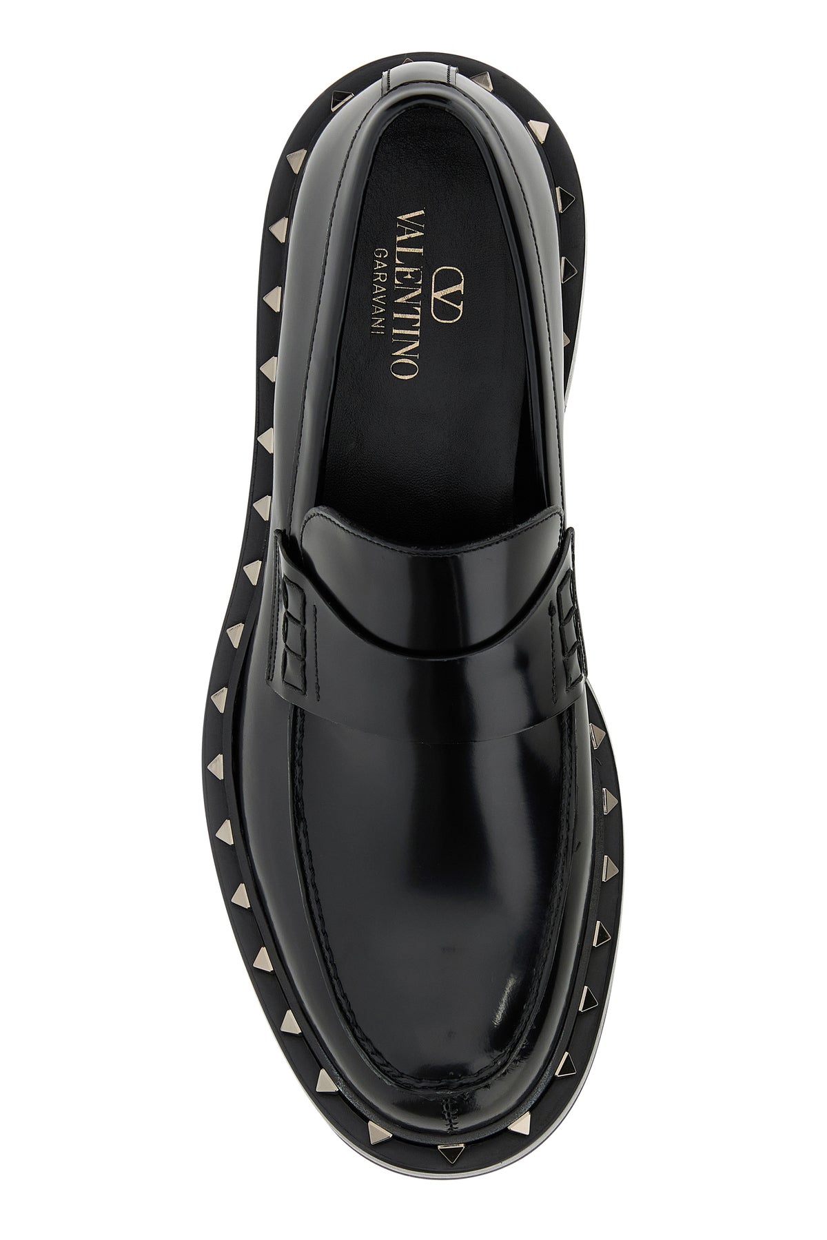 Loafers realized in smooth leather from a polished finish enriched by decorative metal studs on the trimmings.