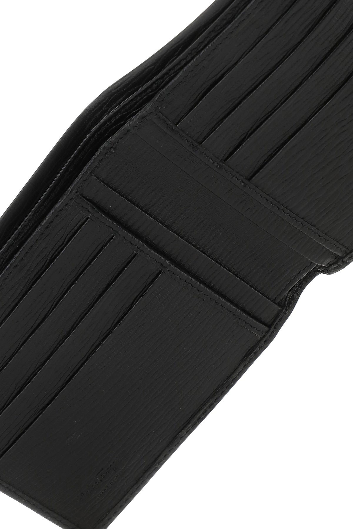 - Interior with two bill compartments, four slit pockets and eight credit card slots