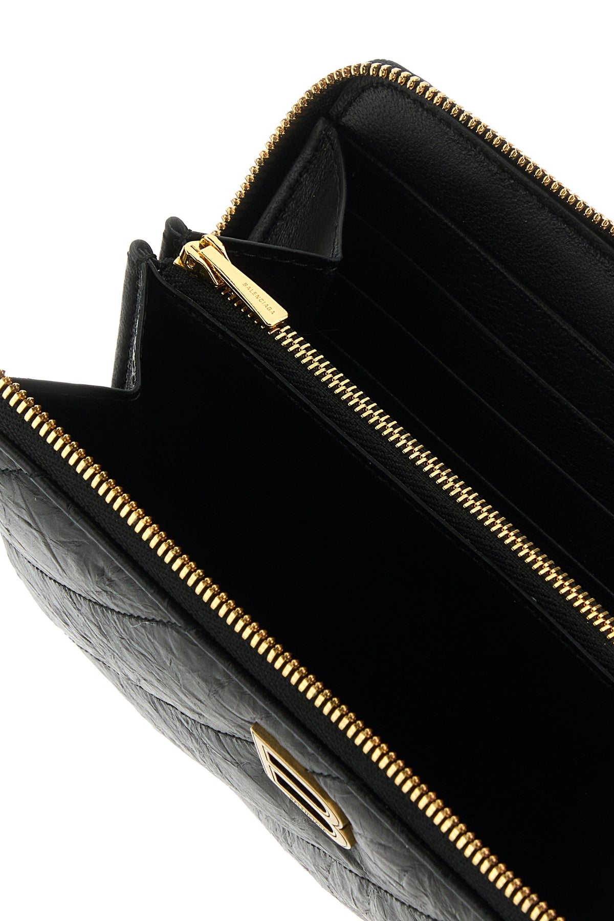 Wallet realized in quilted calf leather enriched by metal B detail at the front.