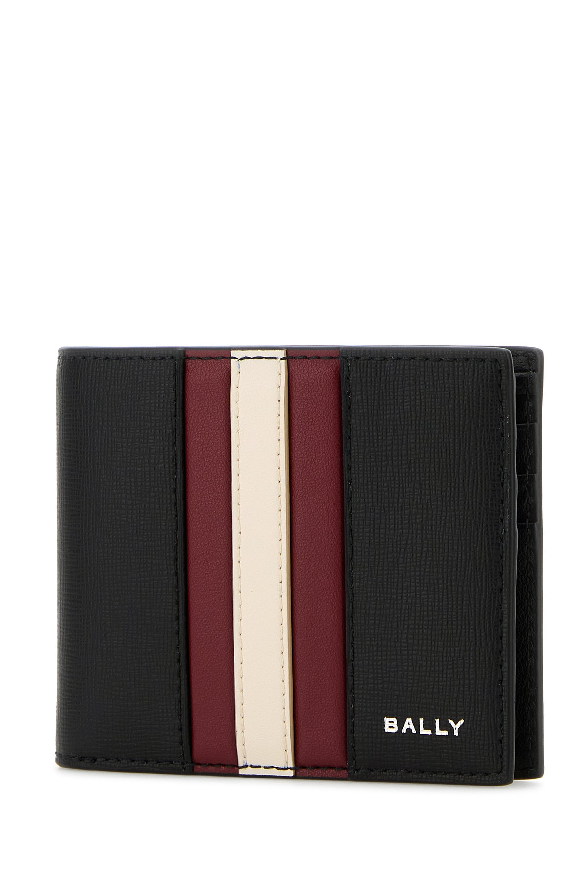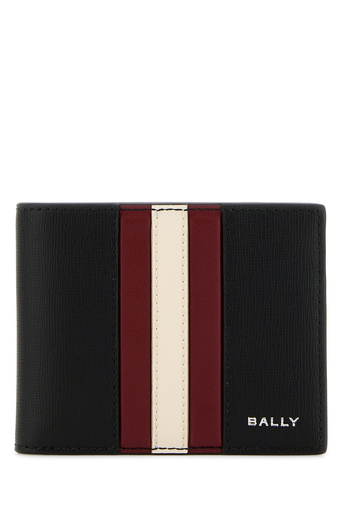 Wallet realized in grained leather characterized by printed laminated logo at the front enriched by Bally Stripe band at the front.