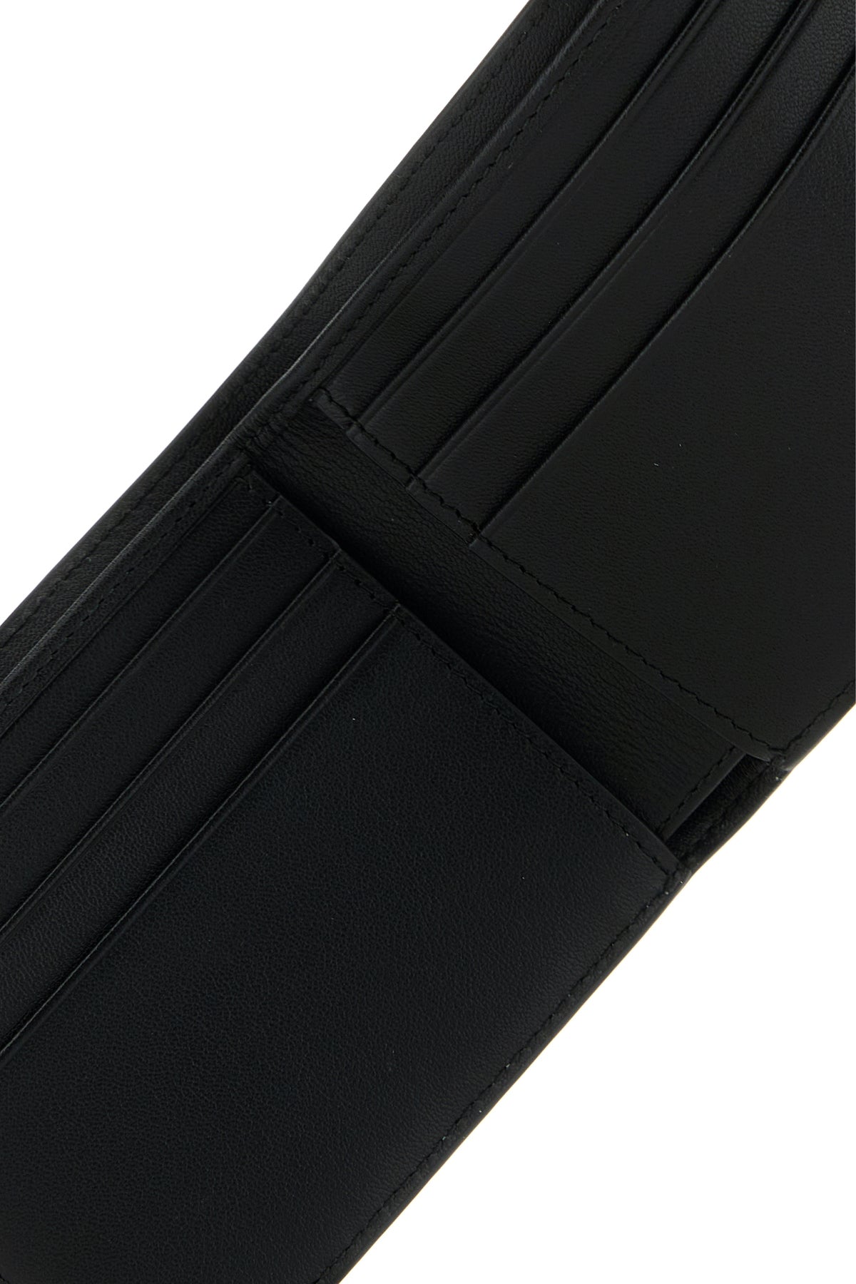 - Interior with a bill compartment, two slit pockets and six credit card slots