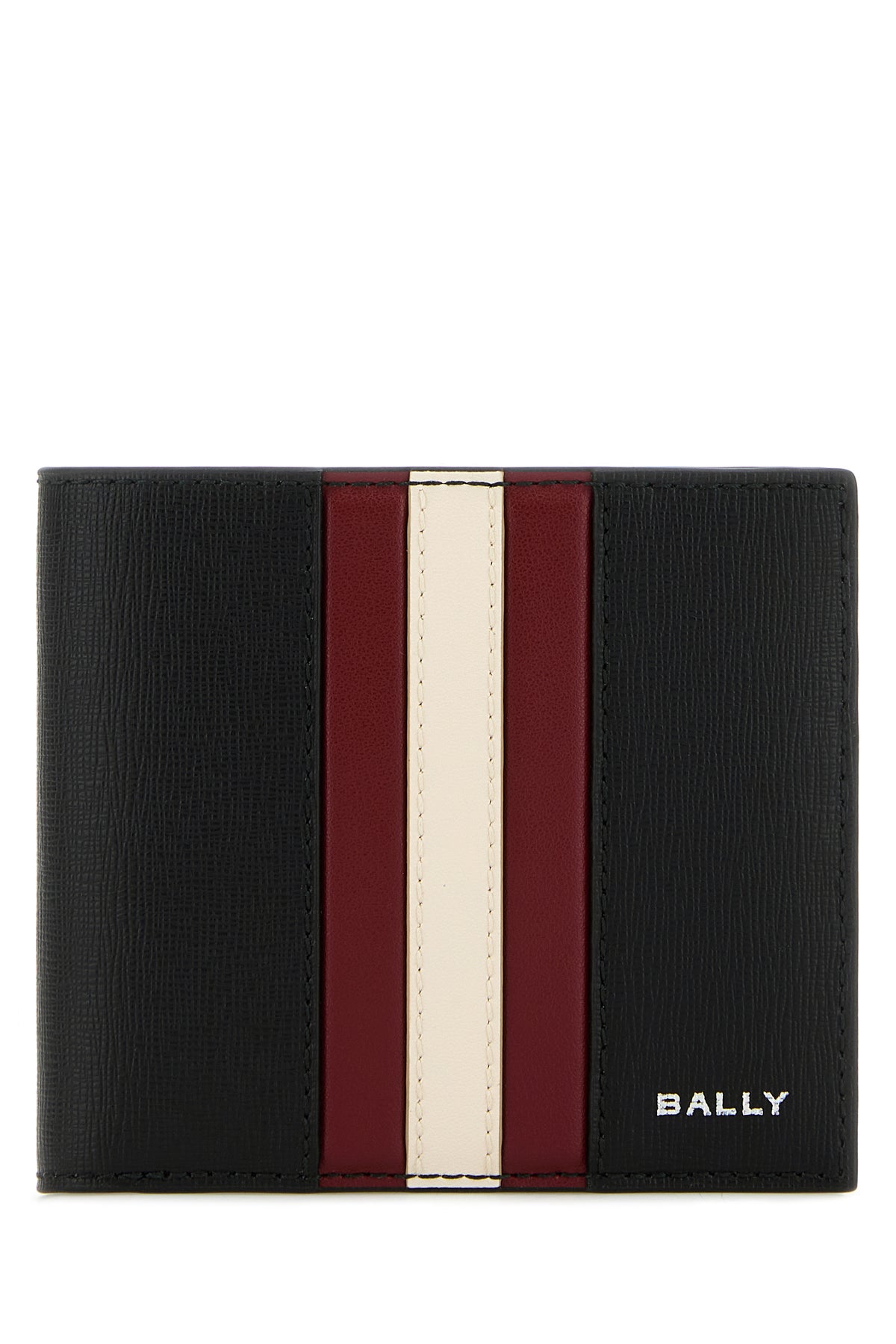 Wallet realized in grained leather characterized by printed laminated logo at the front enriched by Bally Stripe band at the front.