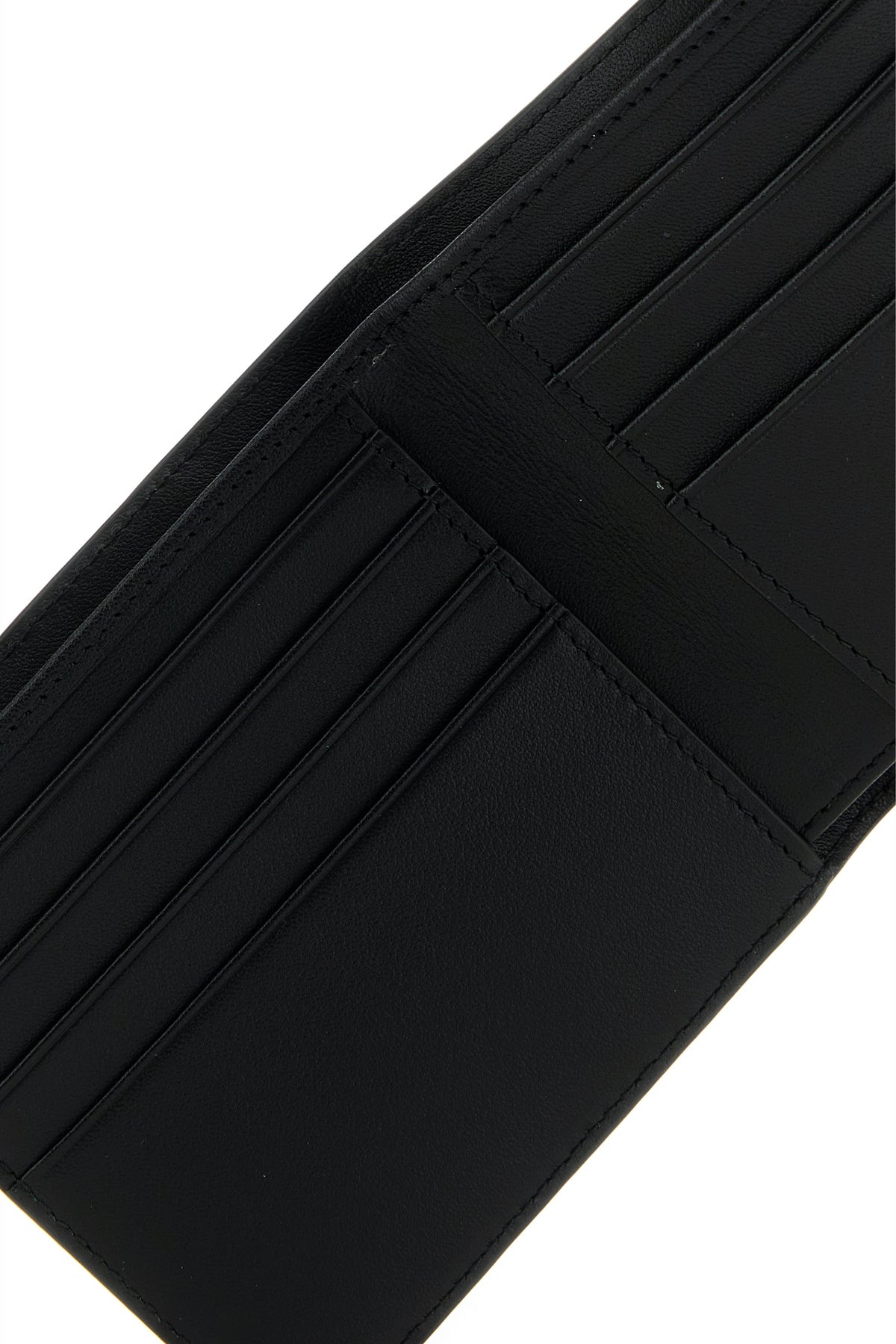 - Interior with a bill compartment, two slit pockets and eight credit card slots