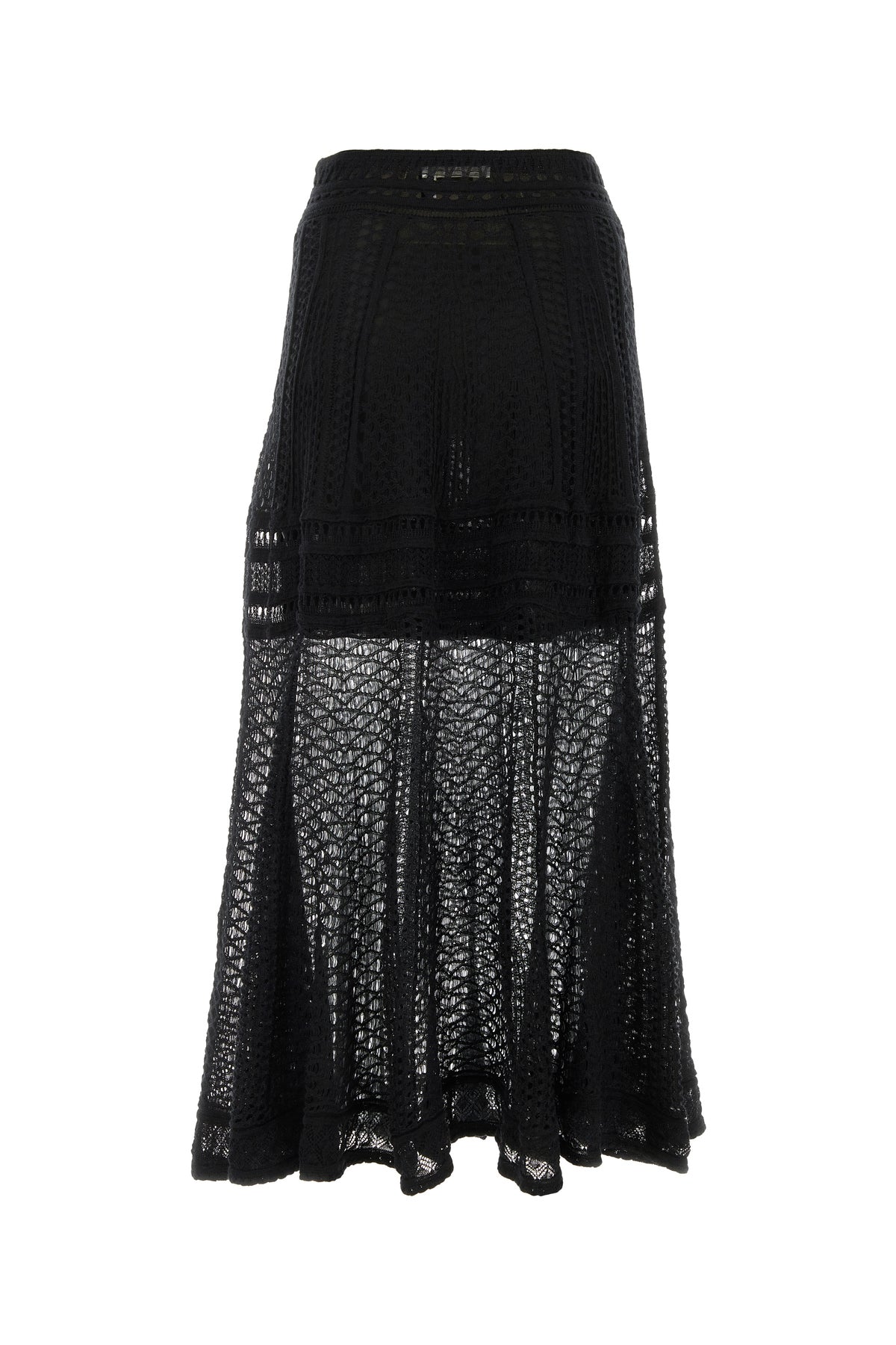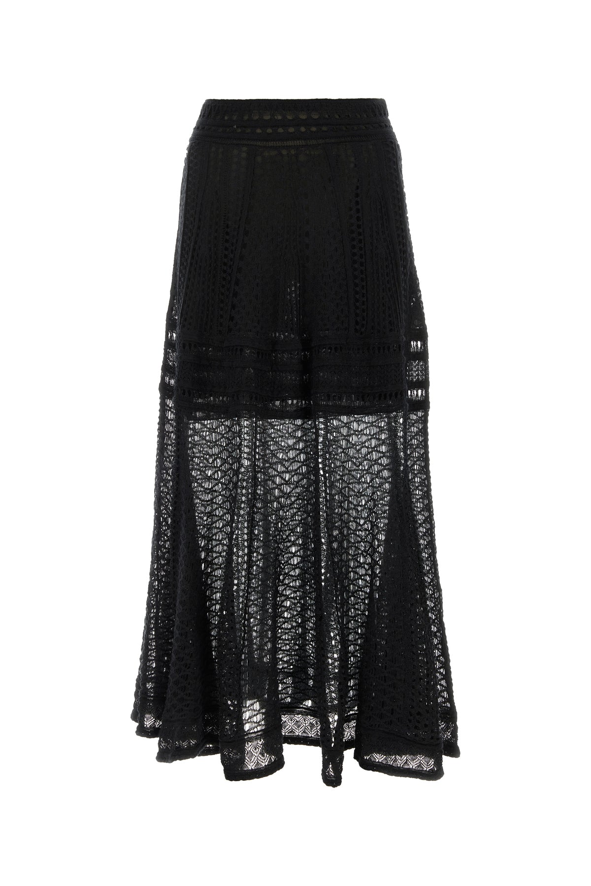Long flared skirt realized in knitted linen blend.