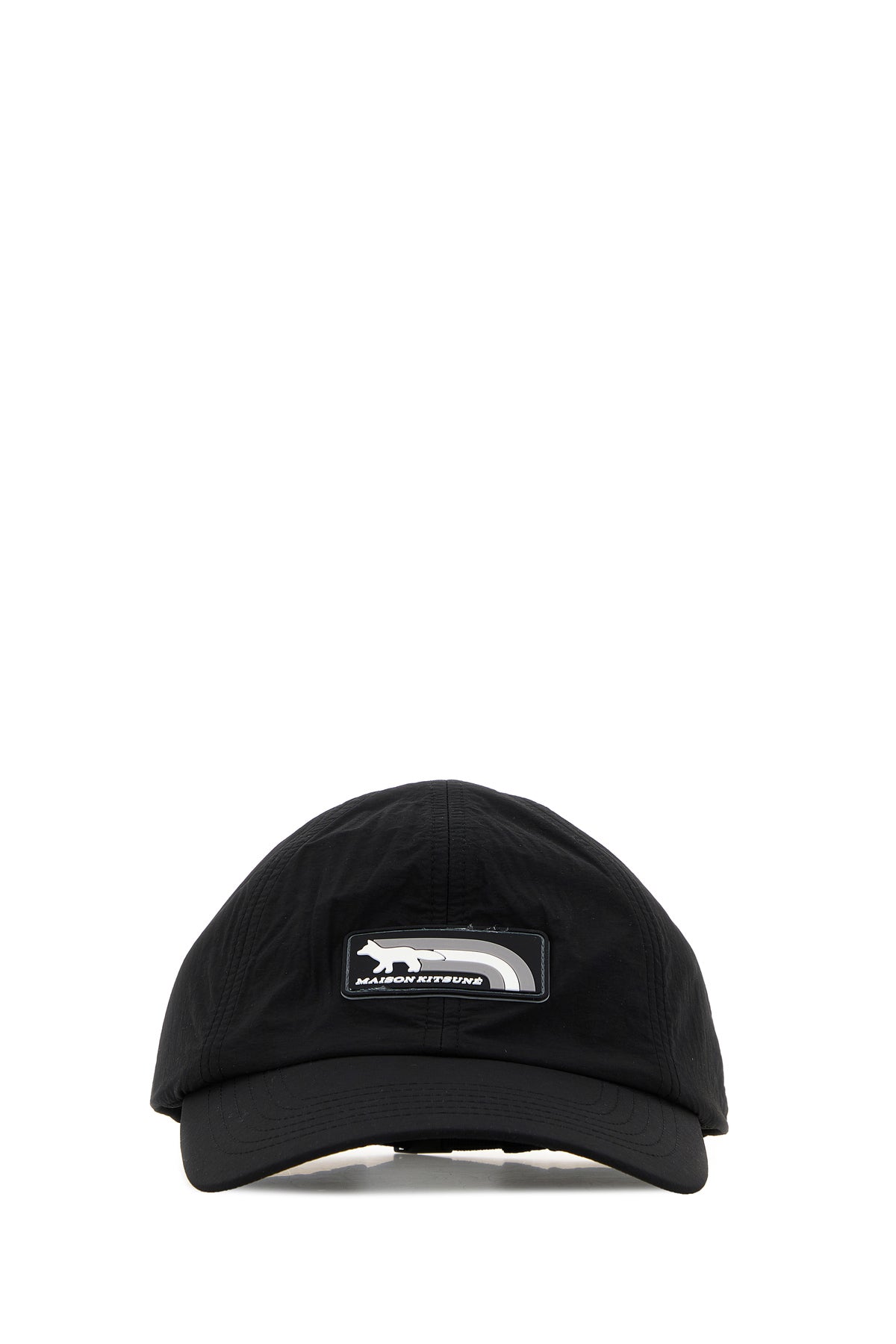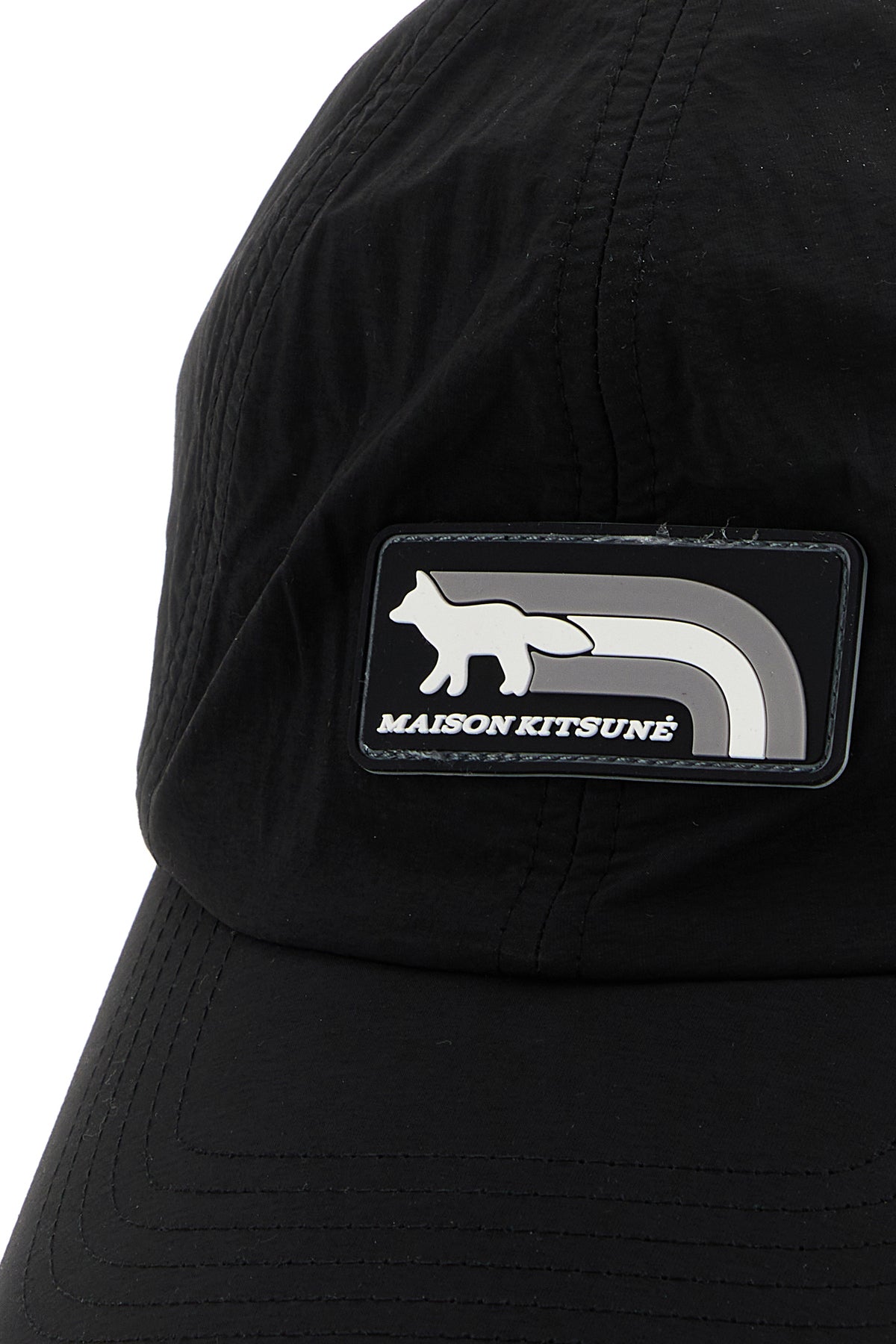 Baseball cap realized in nylon enriched by rubberized logoed label at the front.
