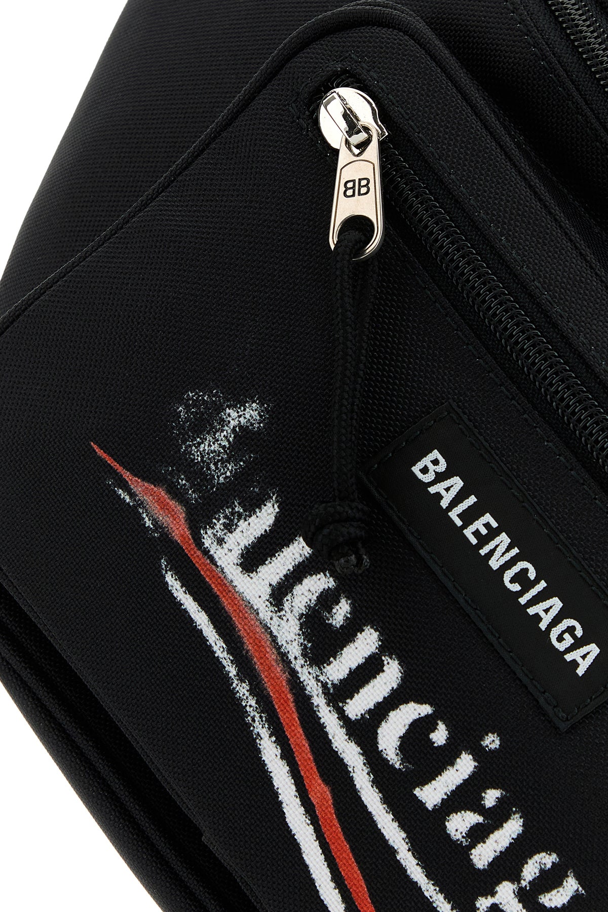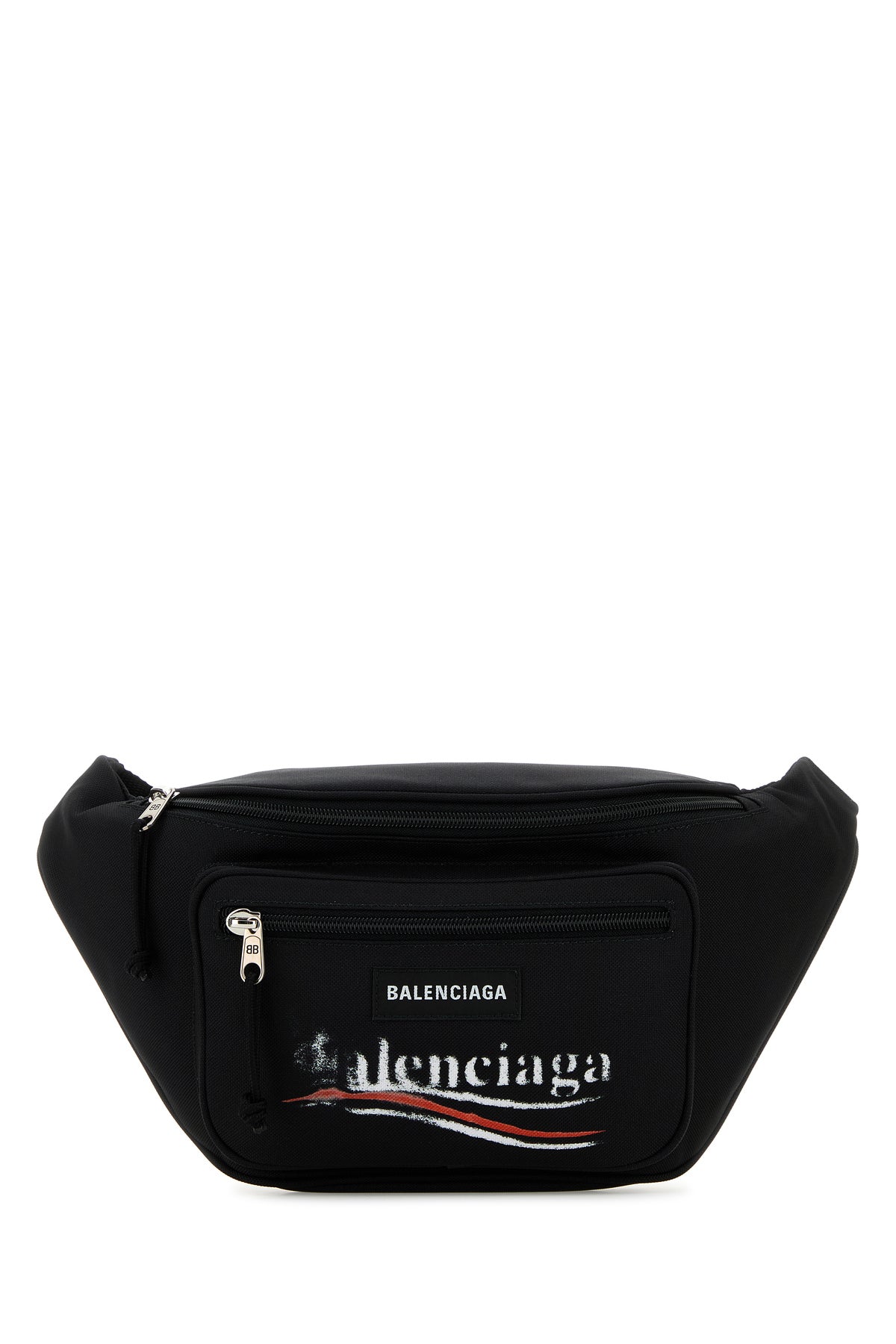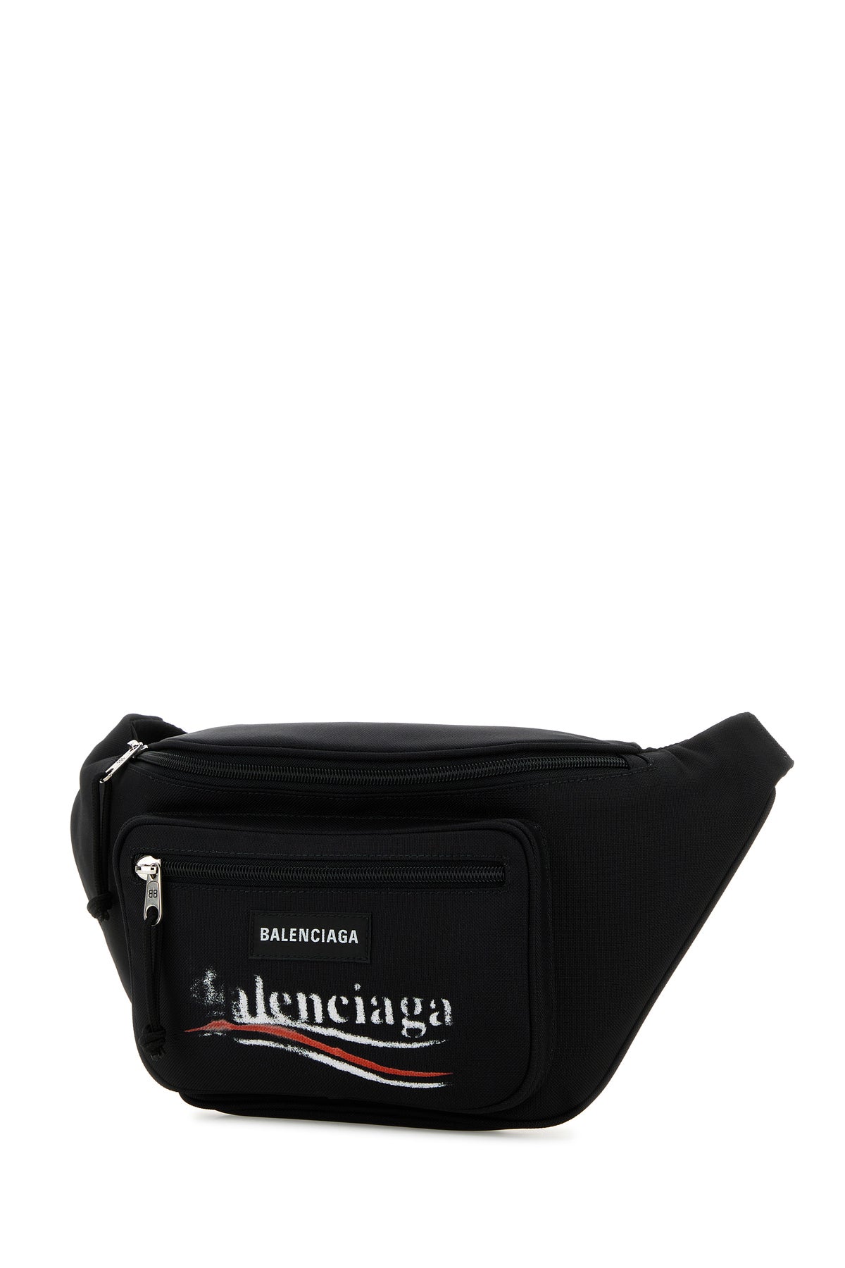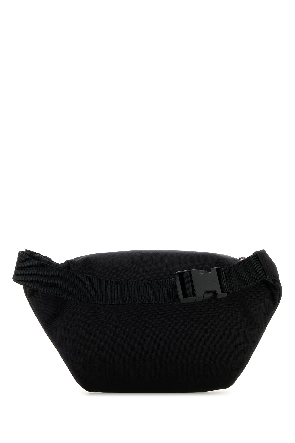 Belt bag realized in recycled nylon characterized by contrasting logoed print at the front enriched by logoed label at the front.