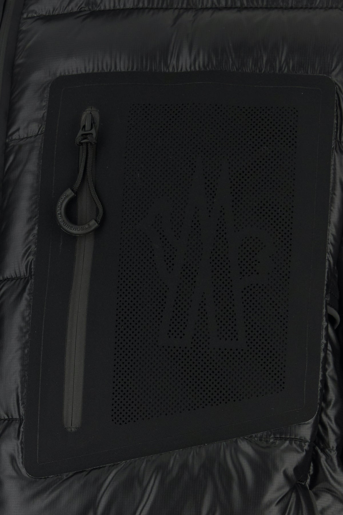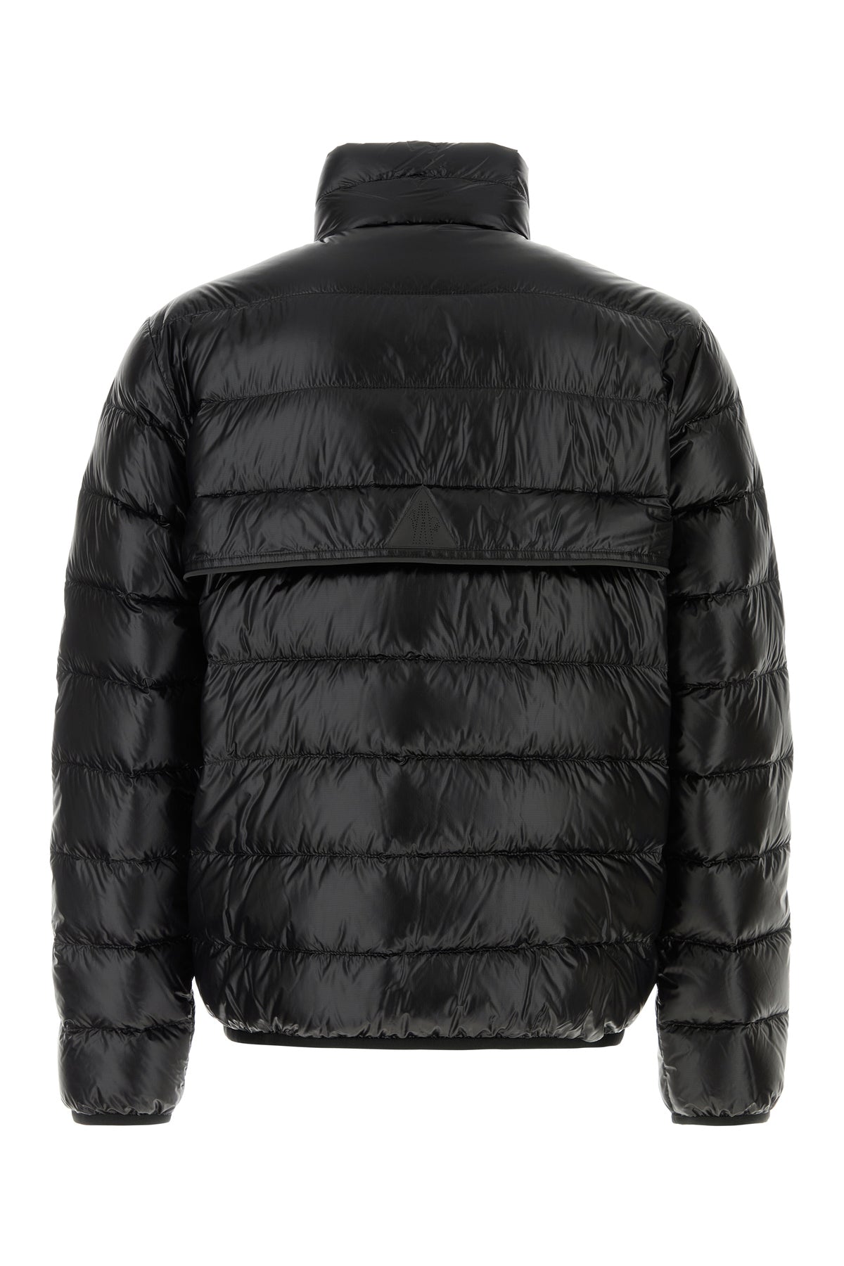 Down jacket realized in quilted nylon characterized by tonal printed logo on the chest enriched by contrasting logoed patch on the sleeve.