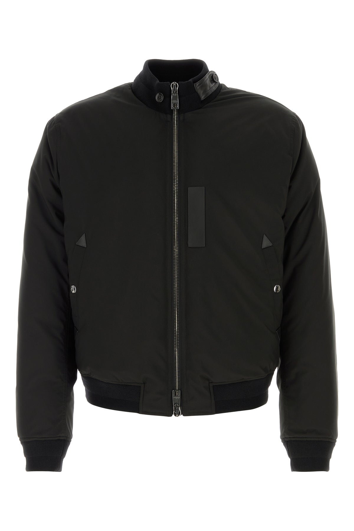Down jacket realized in polyester enriched by logoed metal plate at the back.