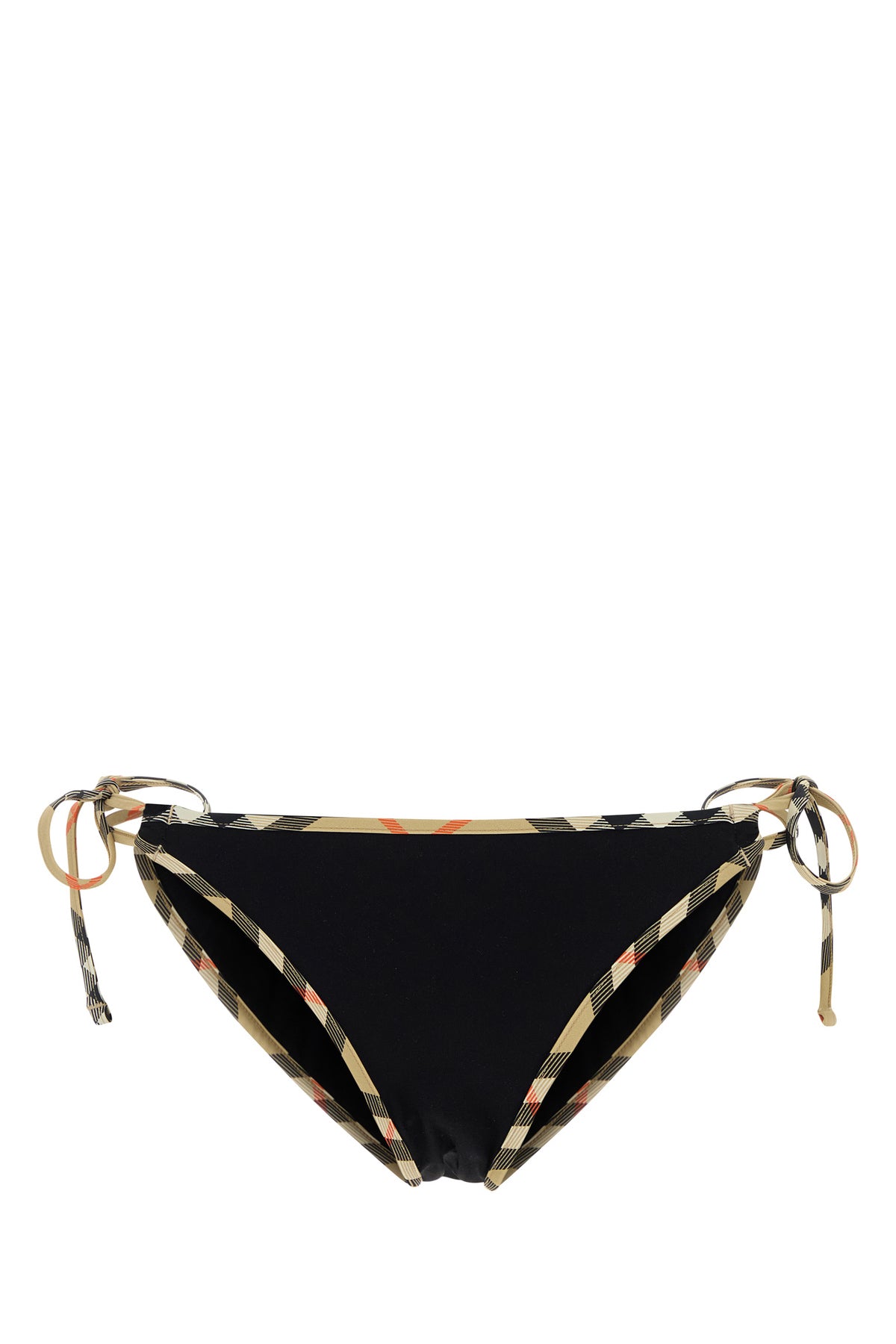 Bikini bottom realized in stretch nylon characterized by Burberry Check motif on the trimmings.