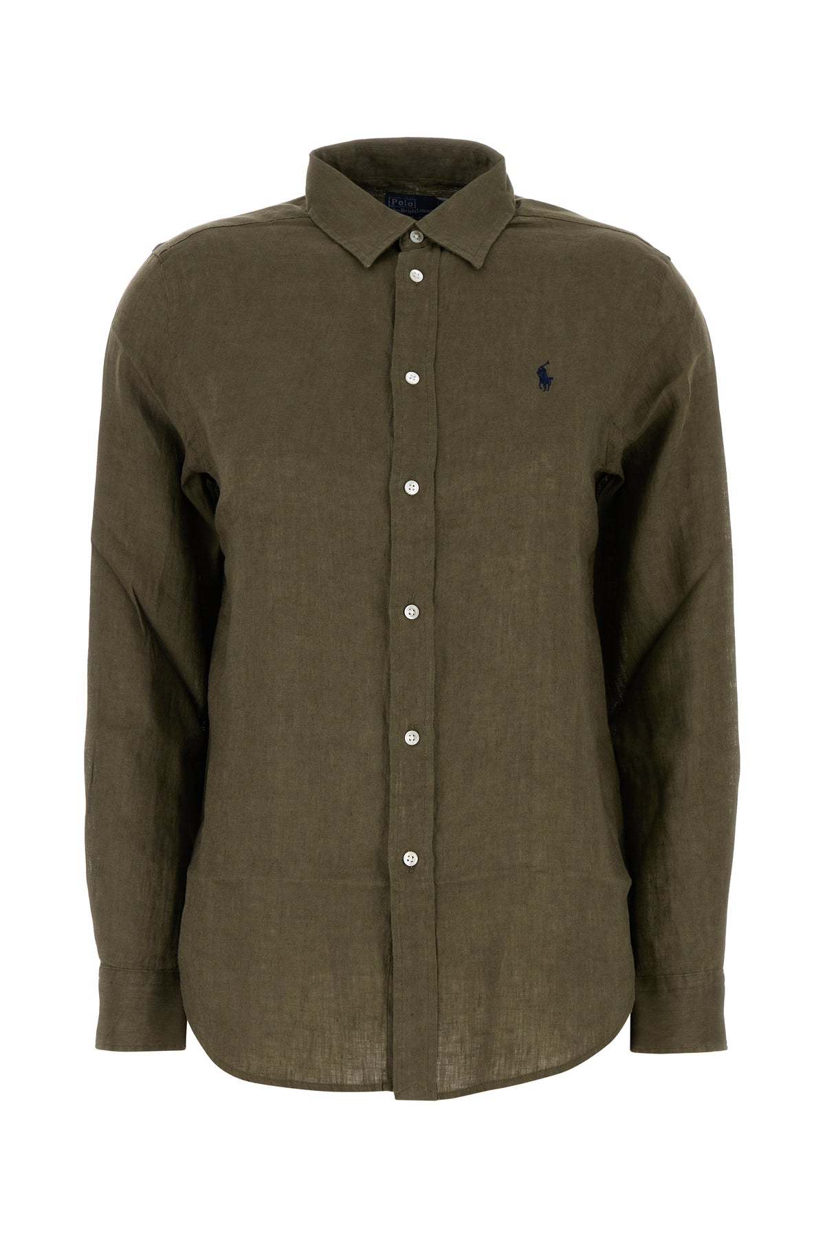 Shirt realized in pure linen characterized by iconic contrasting embroidered logo on the chest.