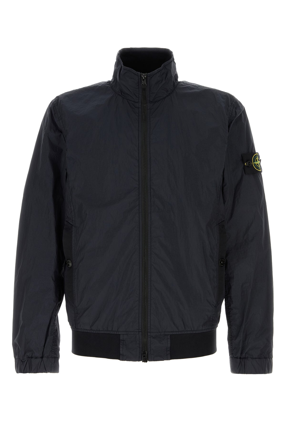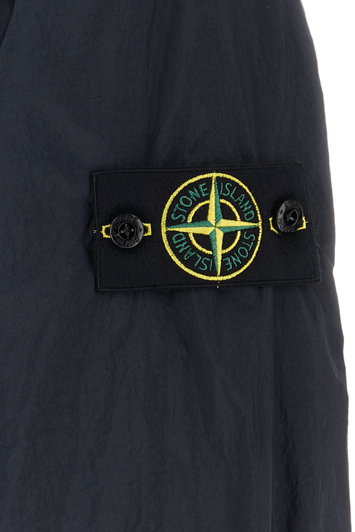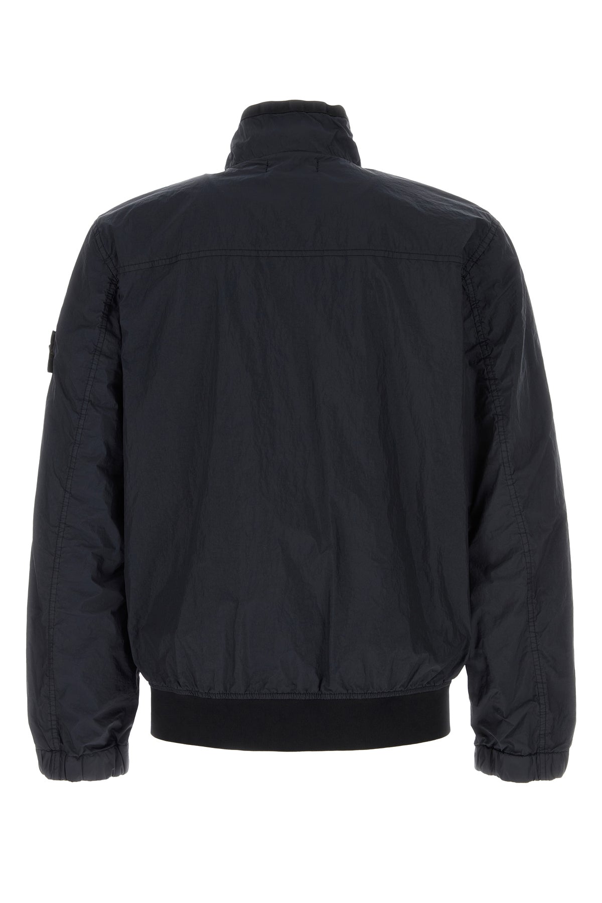 Jacket realized in nylon enriched by detachable logoed label on the sleeve.