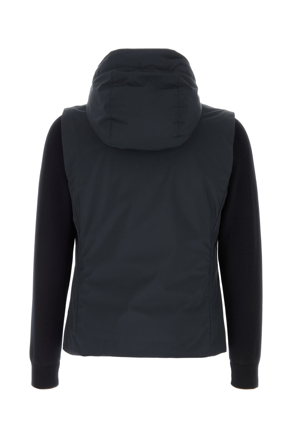 Down jacket realized in polyester with stretch cotton inserts on the sleeves.