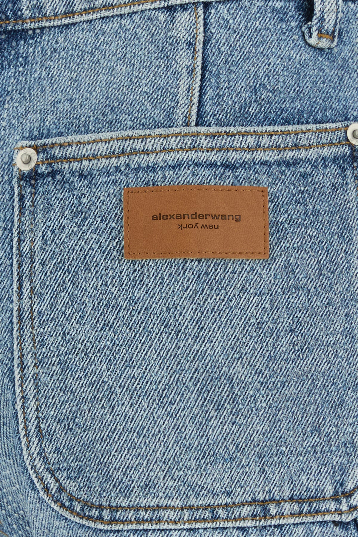 Shorts realized in stonewashed and slightly distressed pure cotton enriched by rhinestones on the entire surface.