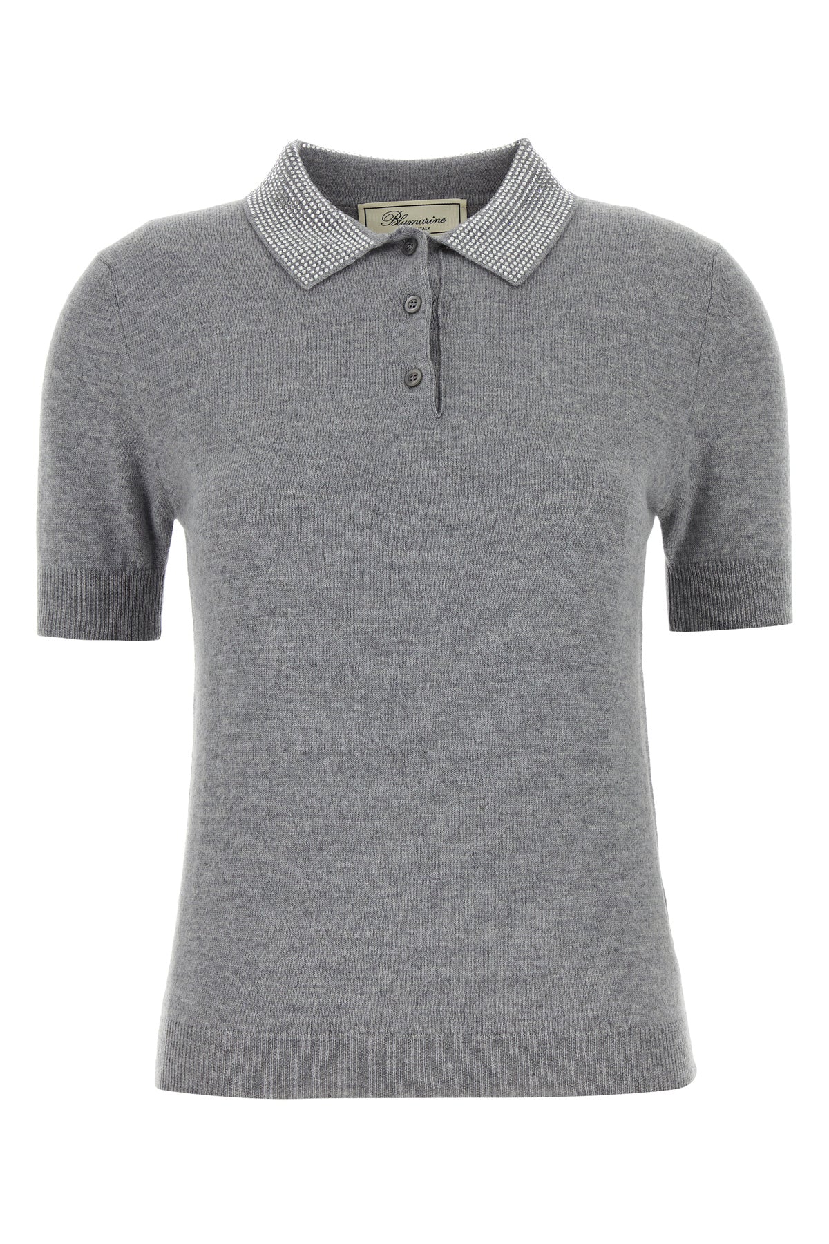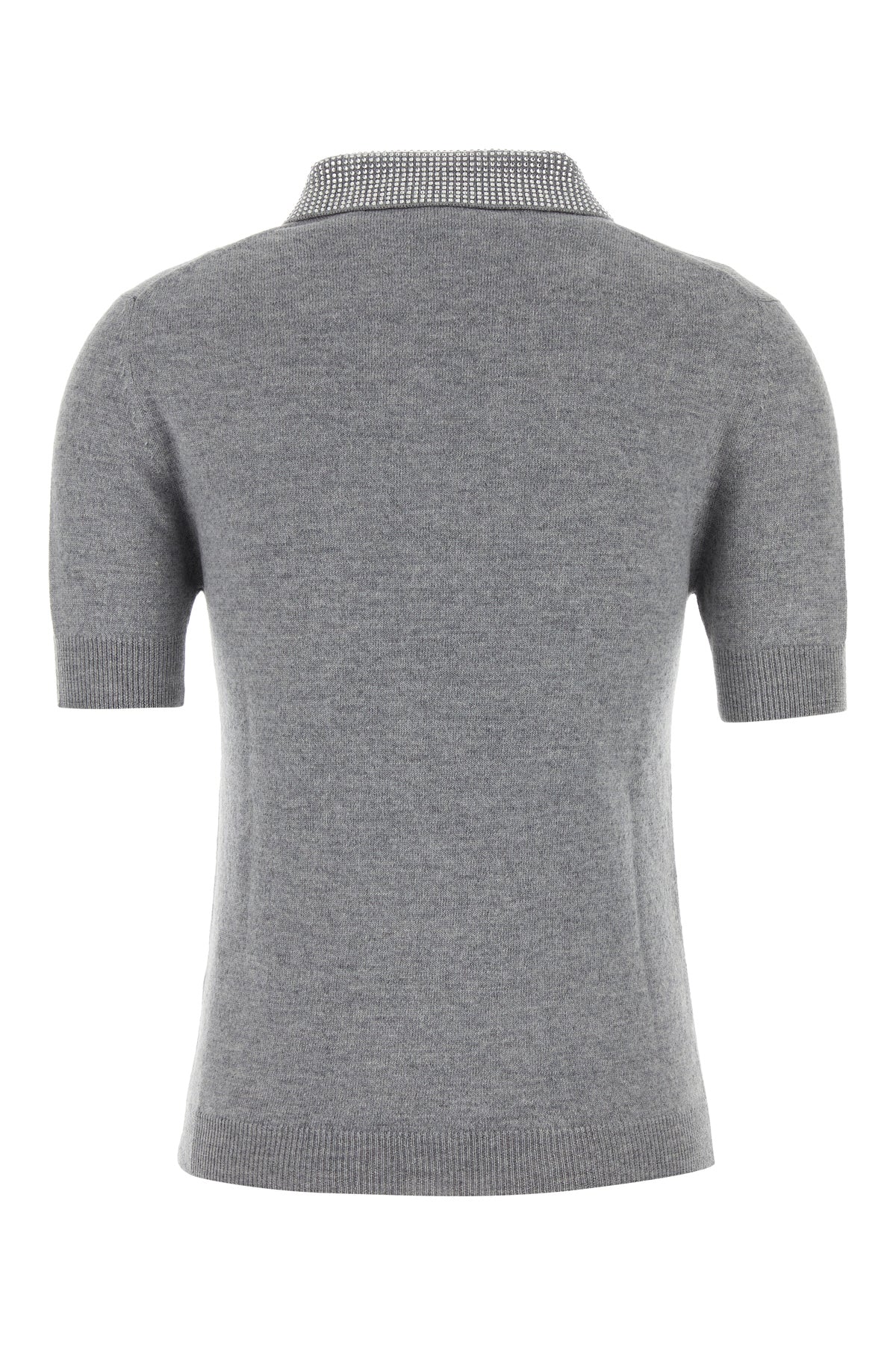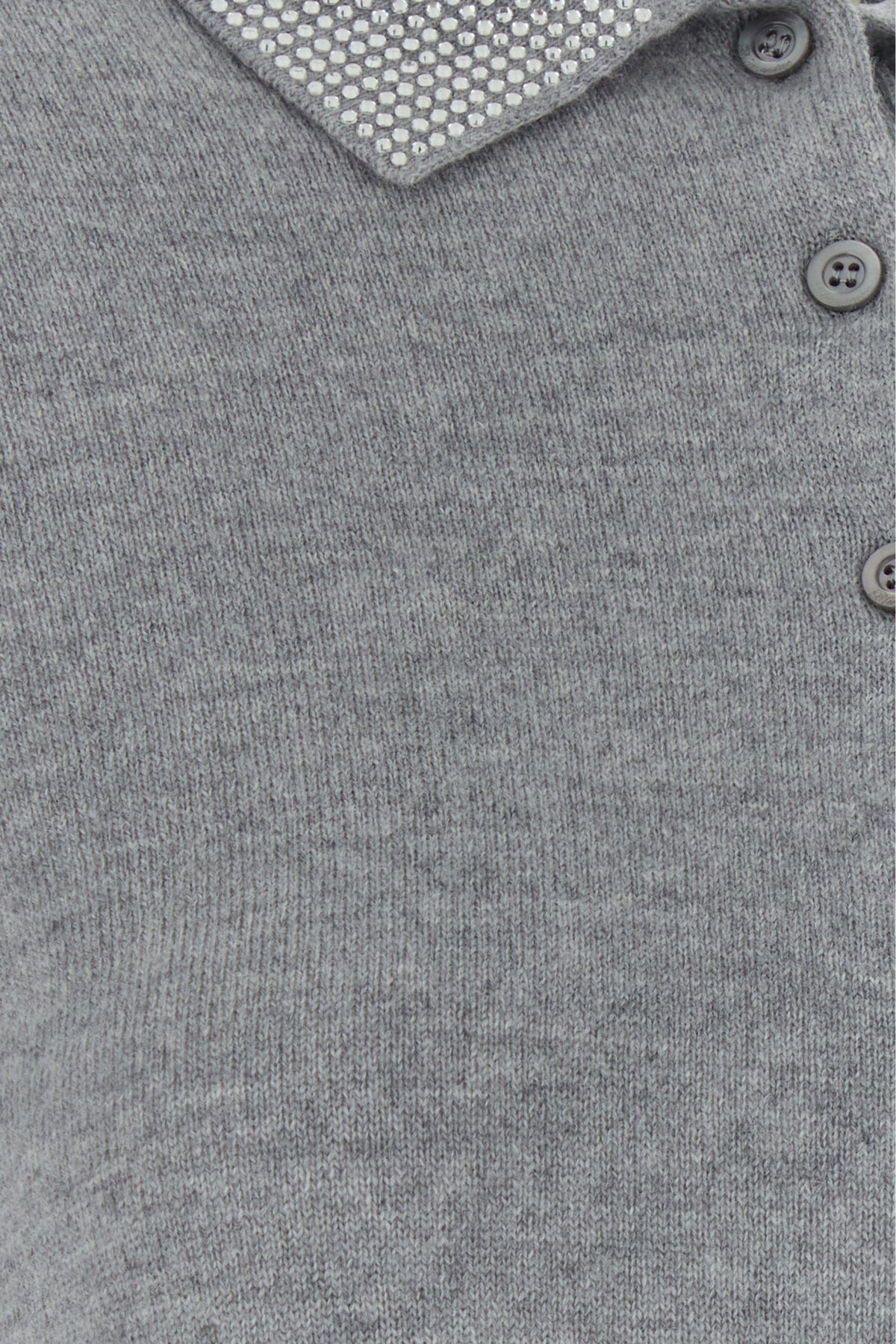 Polo shirt realized in wool and cashmere characterized by collar entirely covered by rhinestones.