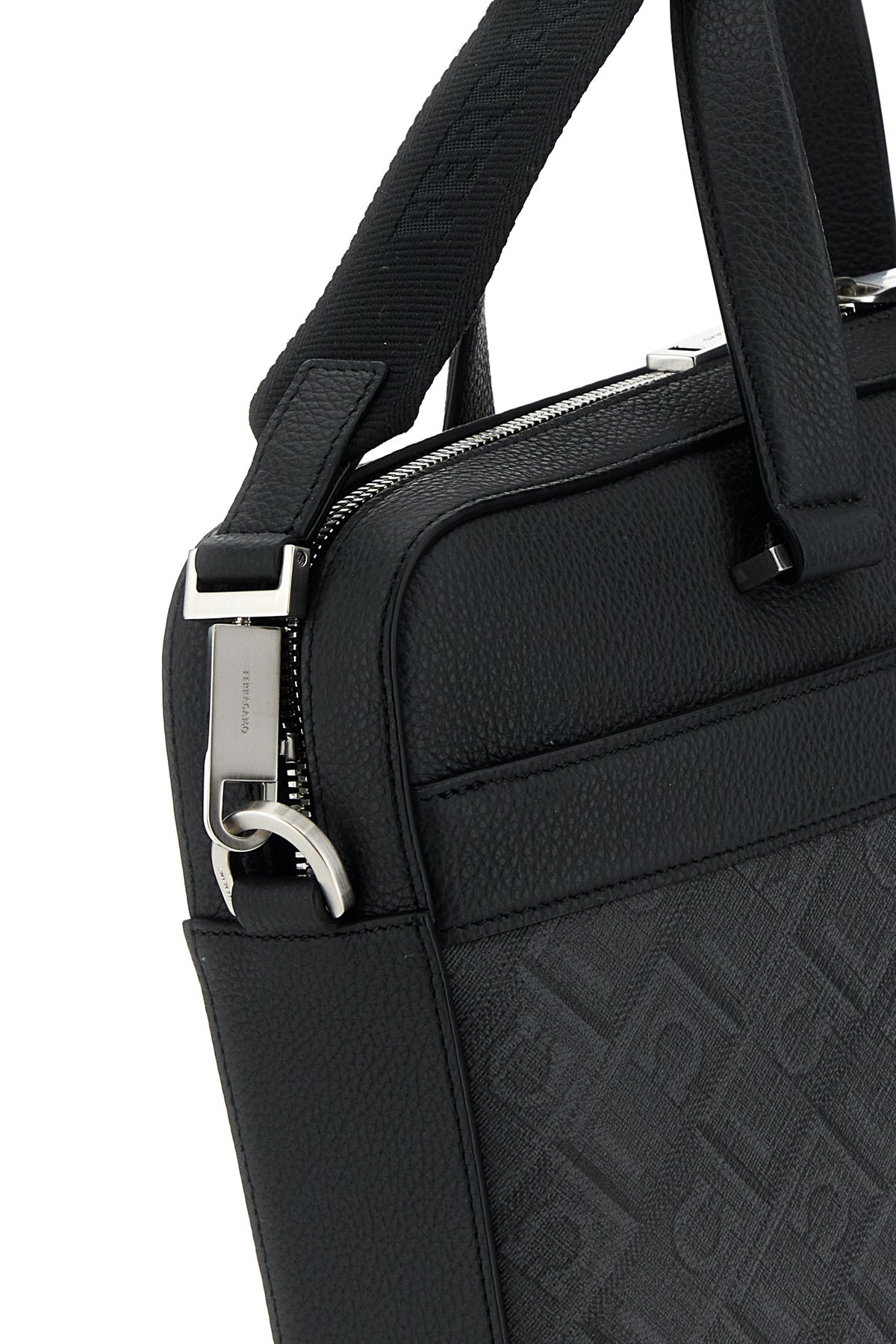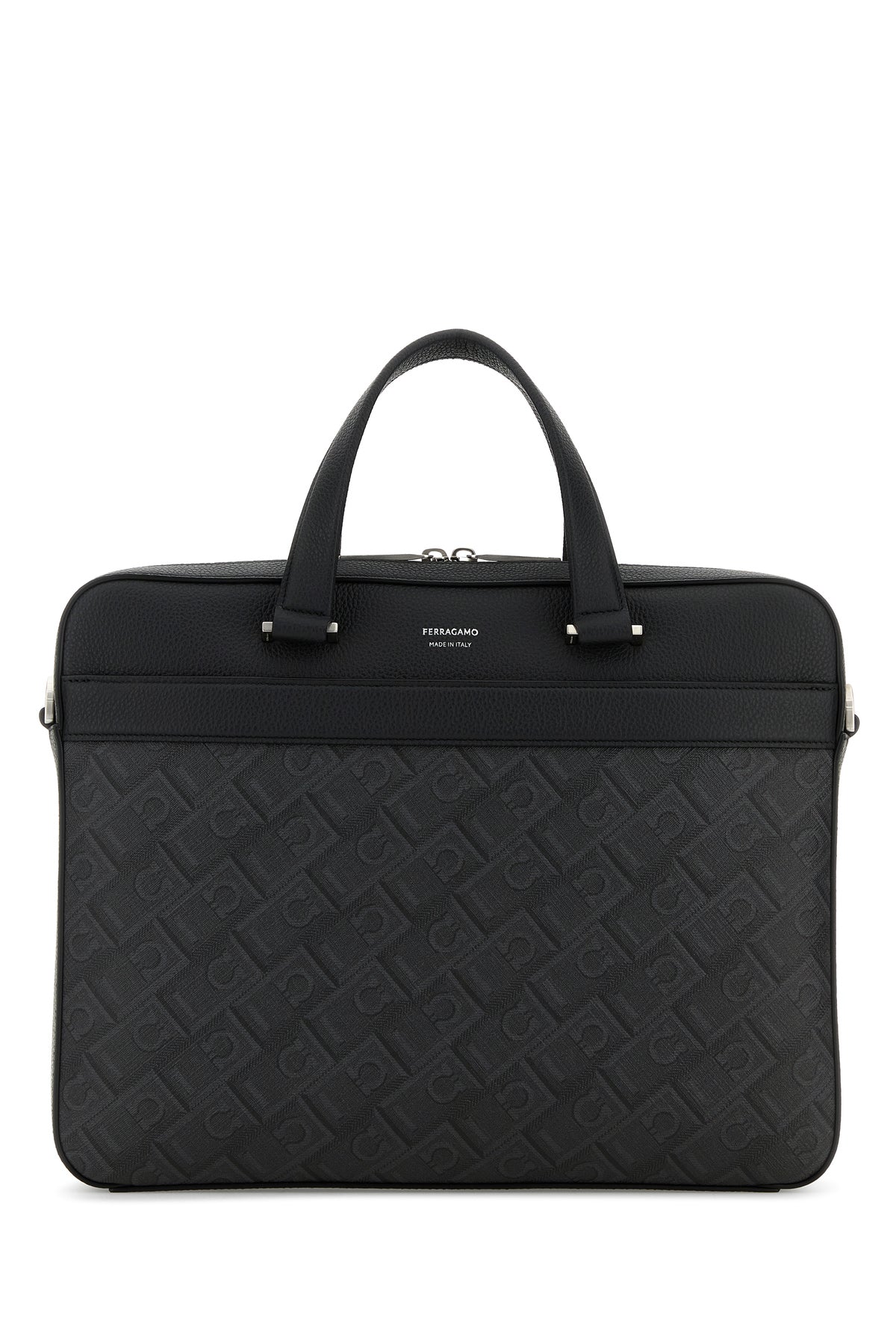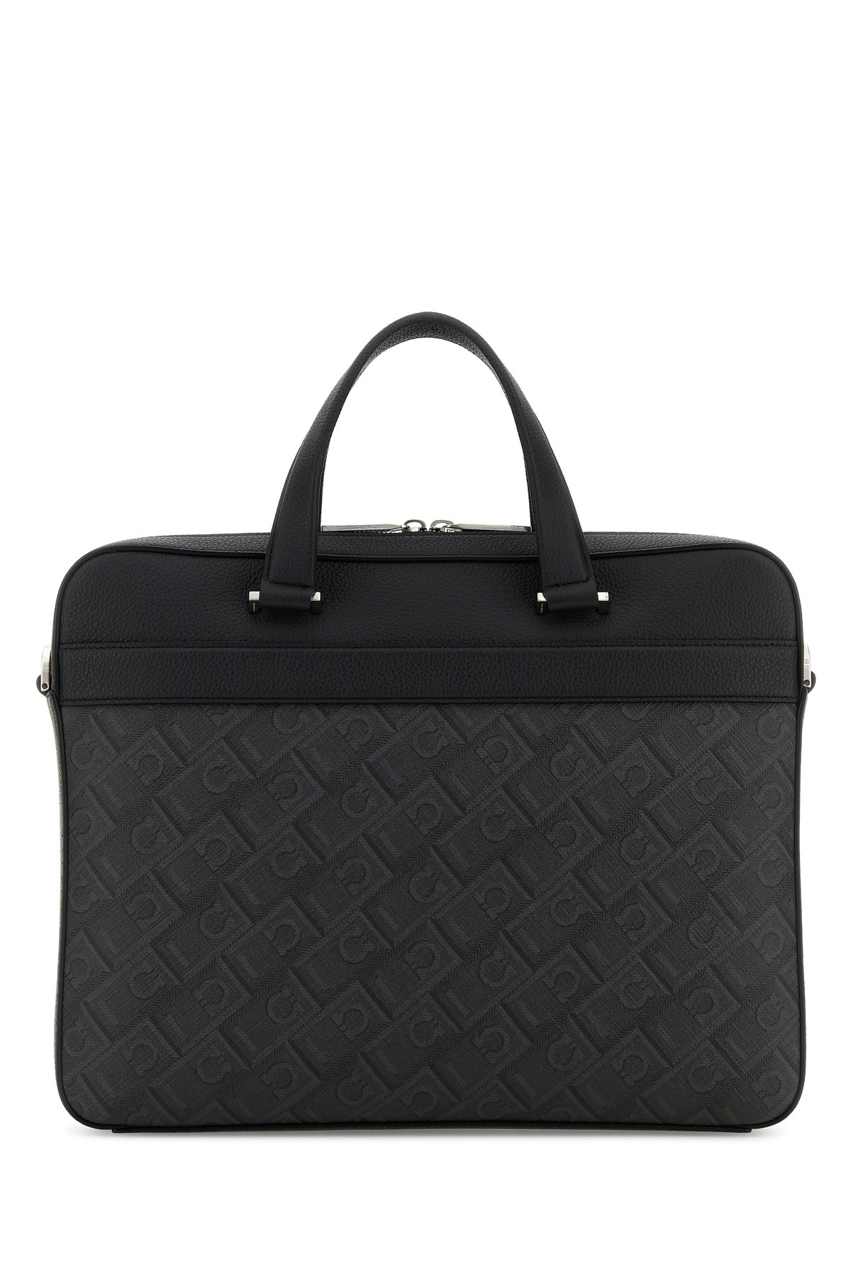Briefcase realized in coated canvas characterized by Gancini print on the entire surface and laminated printed logo at the front.