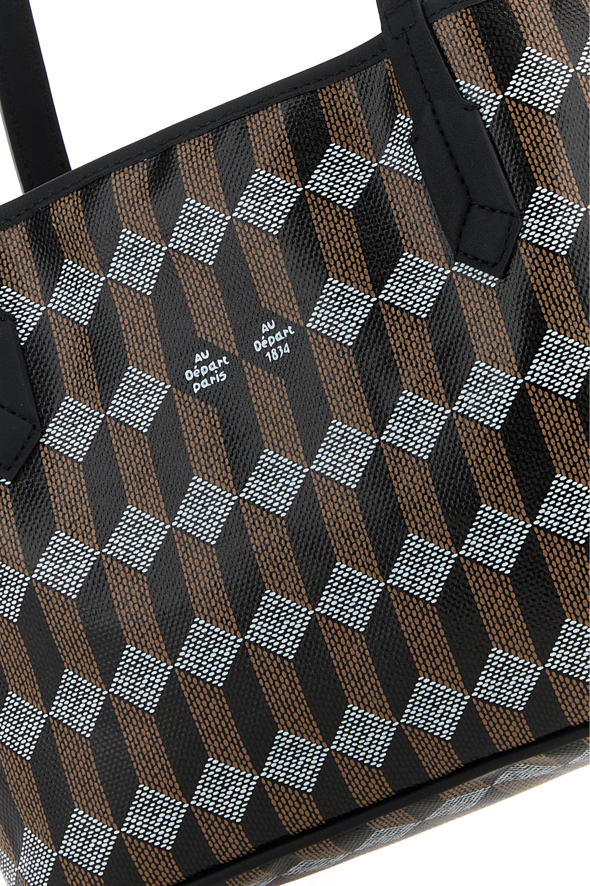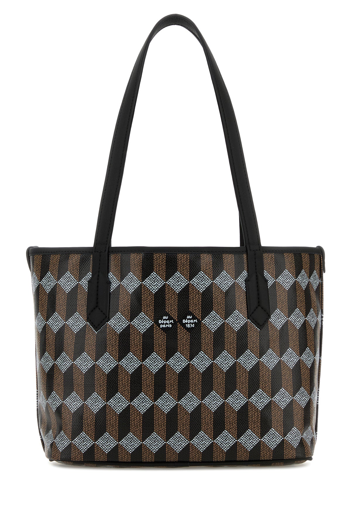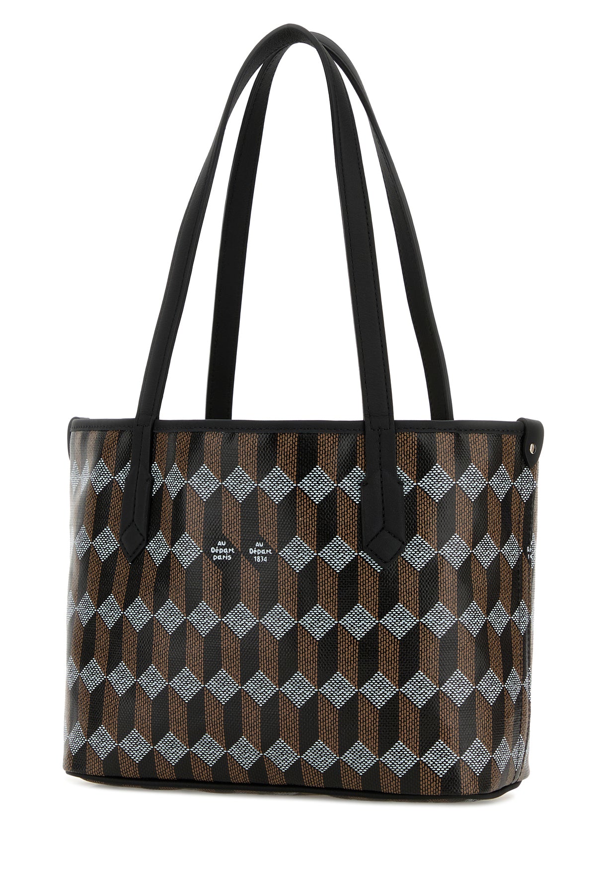 Shopping bag realized in coated canvas characterized by geometric print on the entire surface.