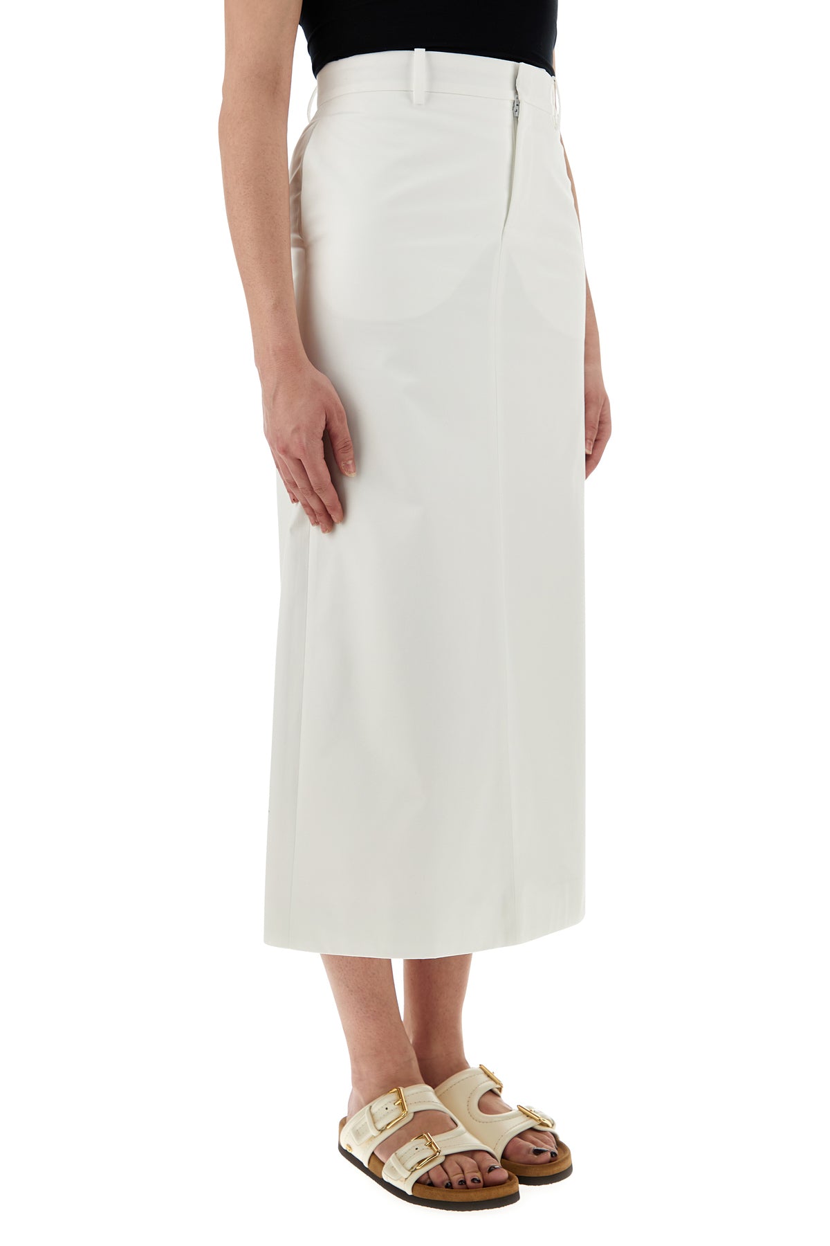 Midi skirt realized in pure cotton characterized by central slit at the back.
