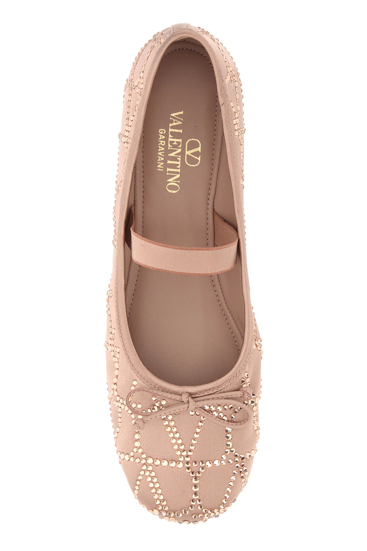 Ballerinas realized in satin enriched by rhinestones Toile Iconographe motif on the entire surface and decorative bow on the toe.
