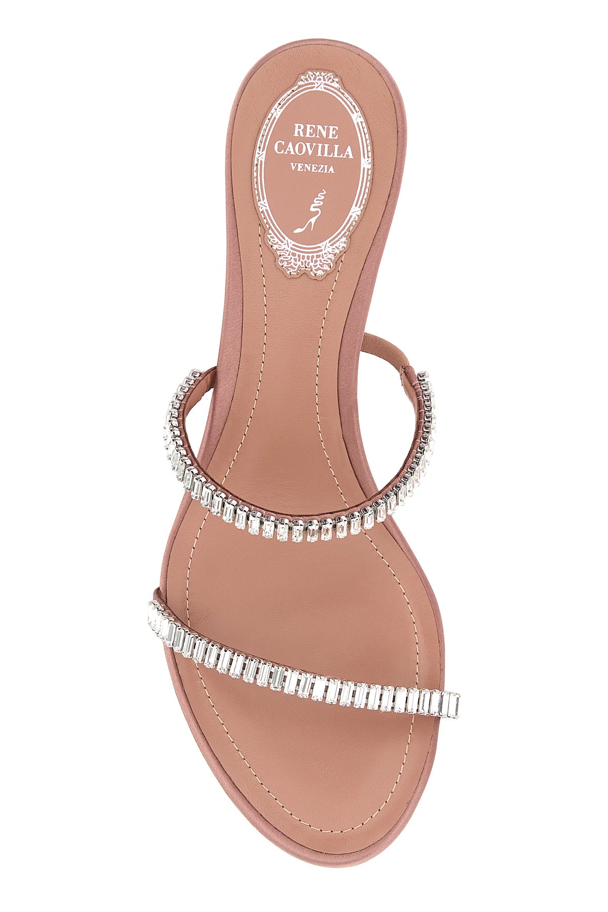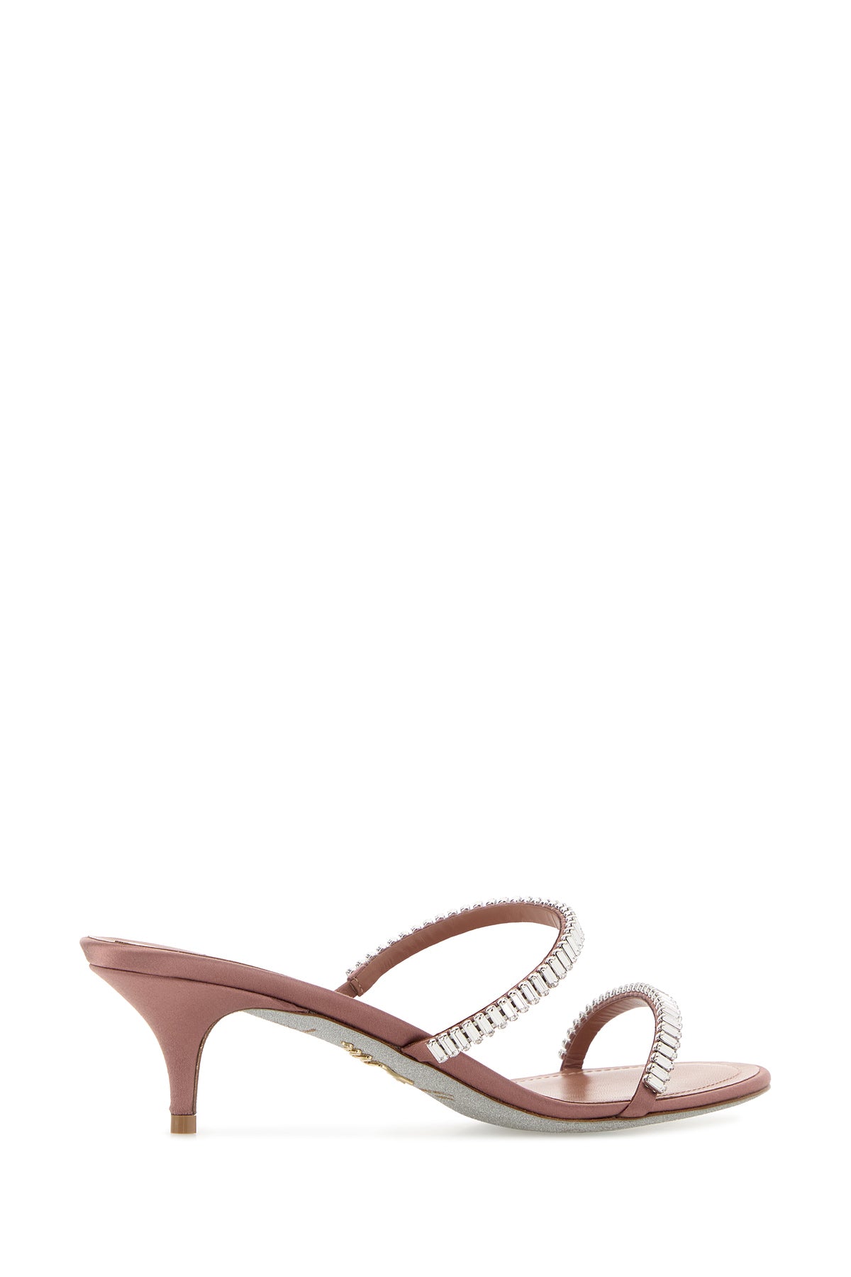 Mules realized in satin enriched by rhinestones on the instep.