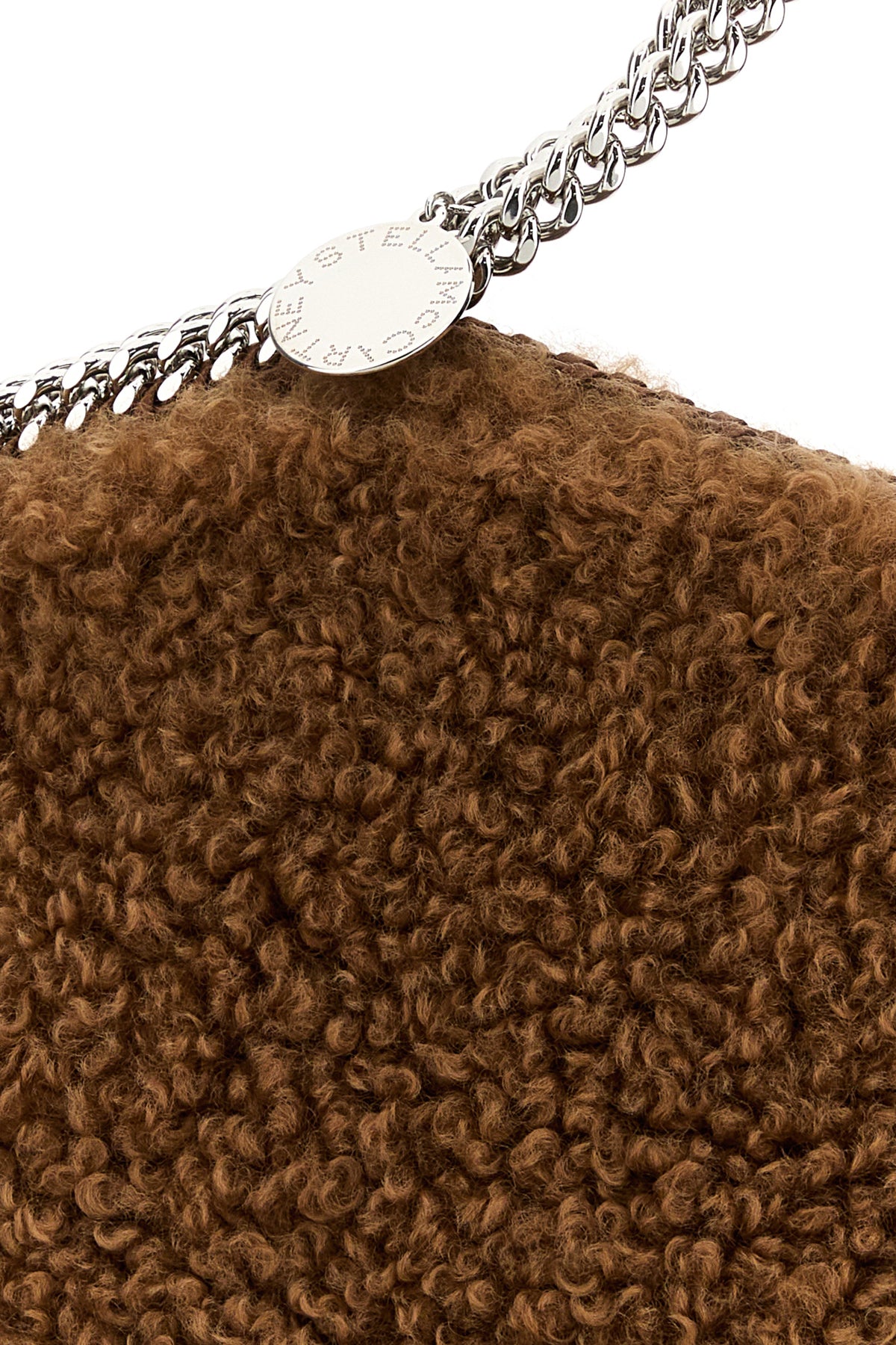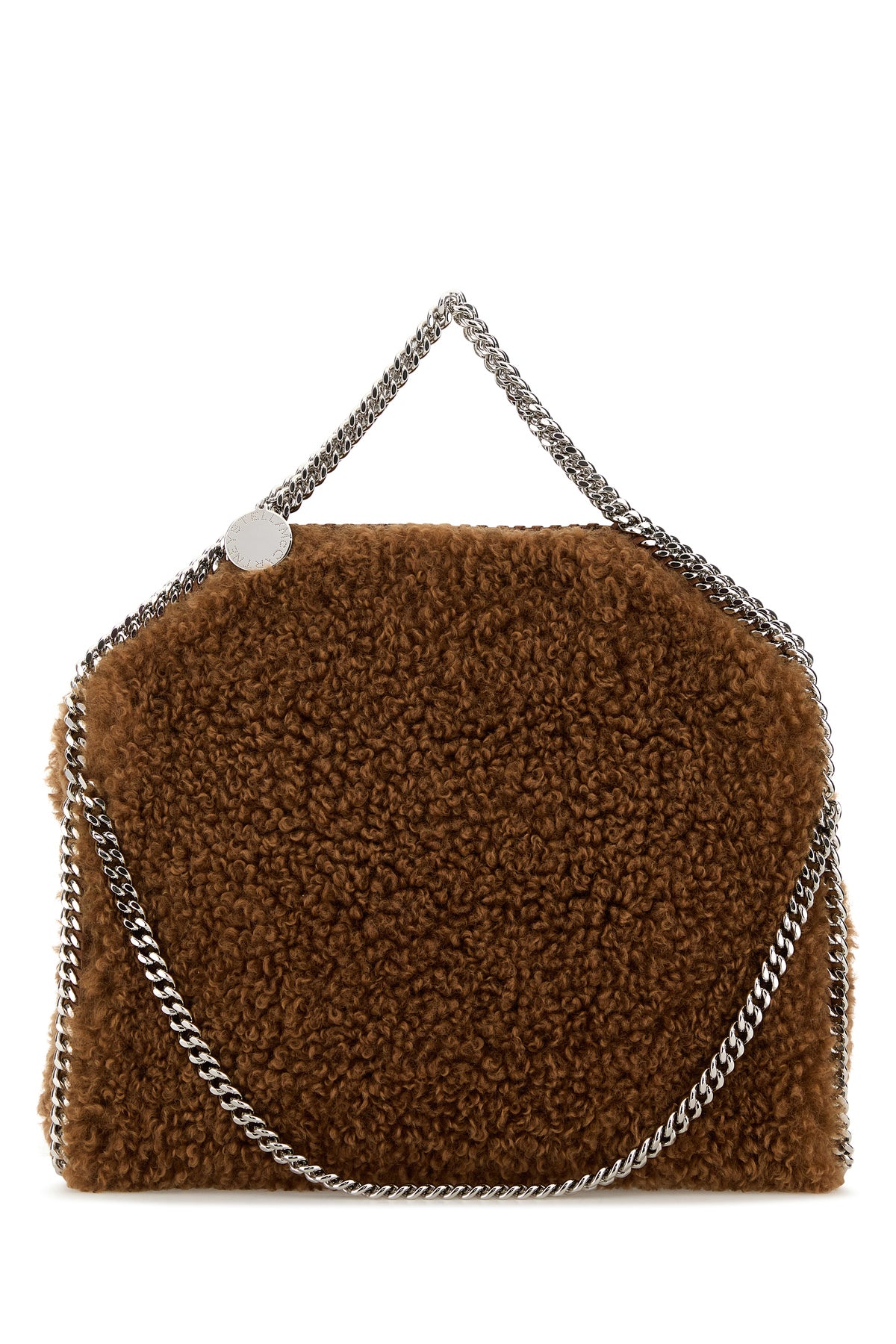 Handbag realized in alter mat shearling enriched by metal chain trimmings.