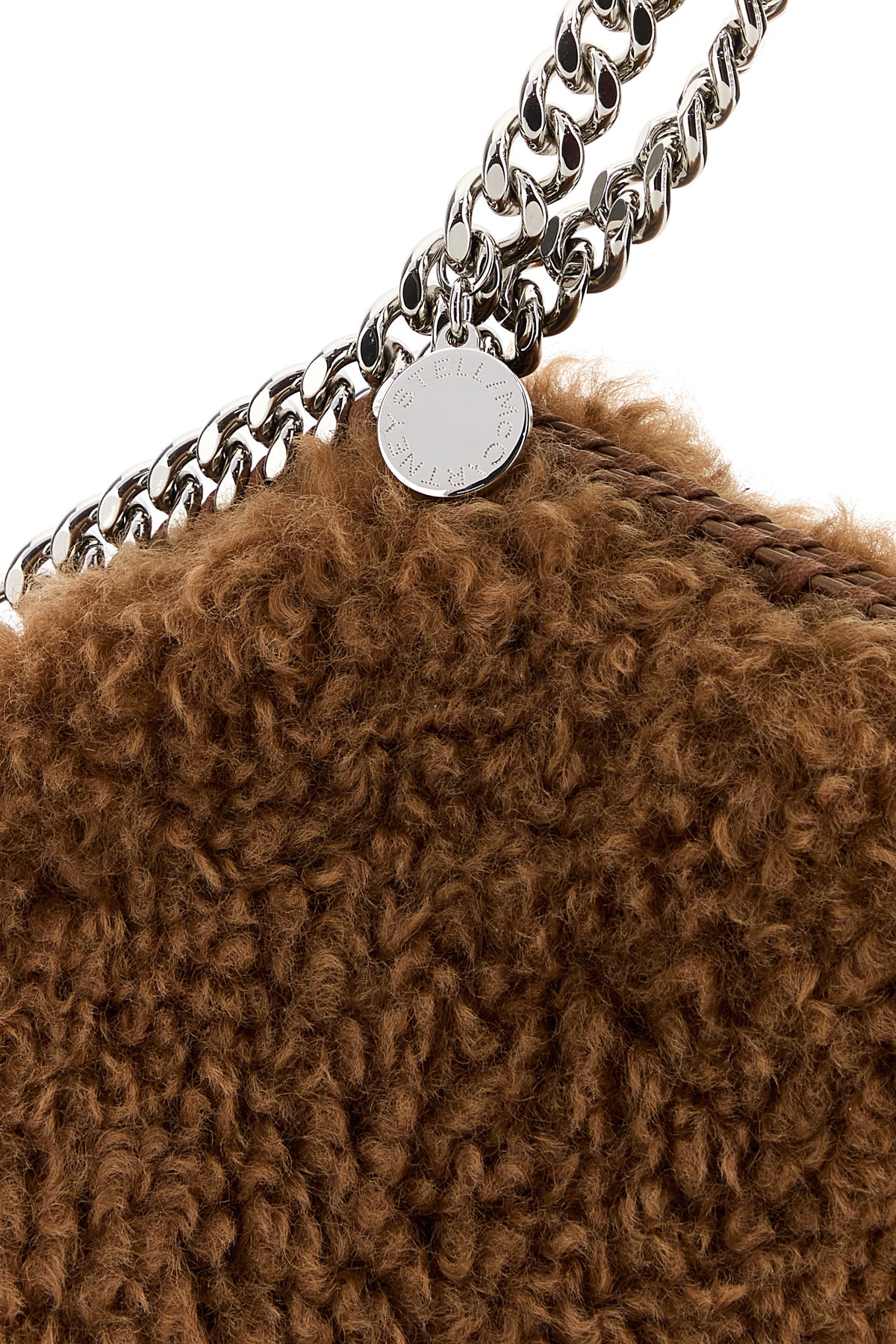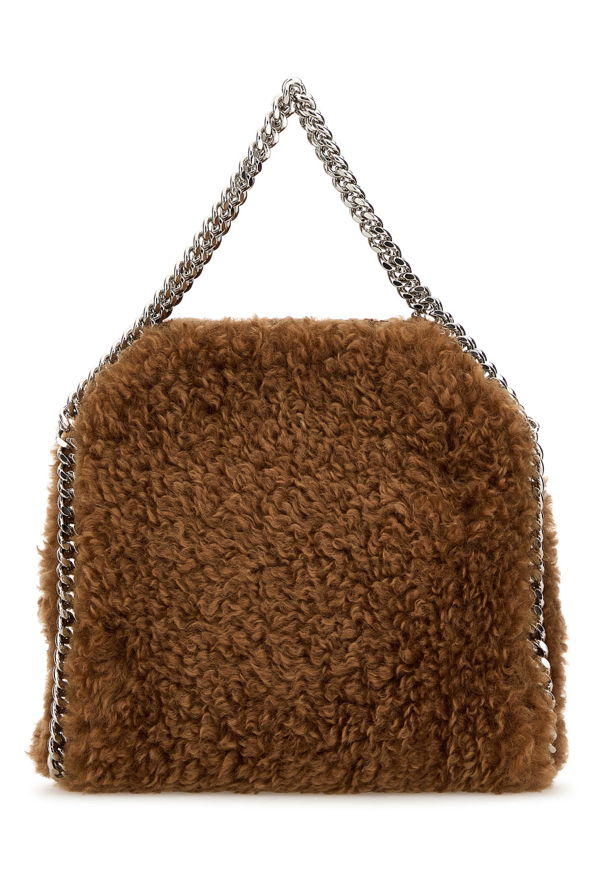 Handbag realized in alter mat shearling enriched by metal chain trimmings.