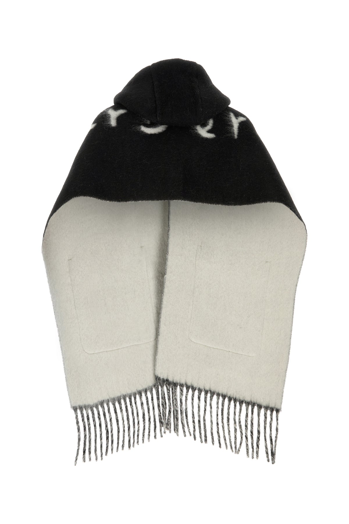 Scarf realized in alpaca blend characterized by embroidered logo at the back.