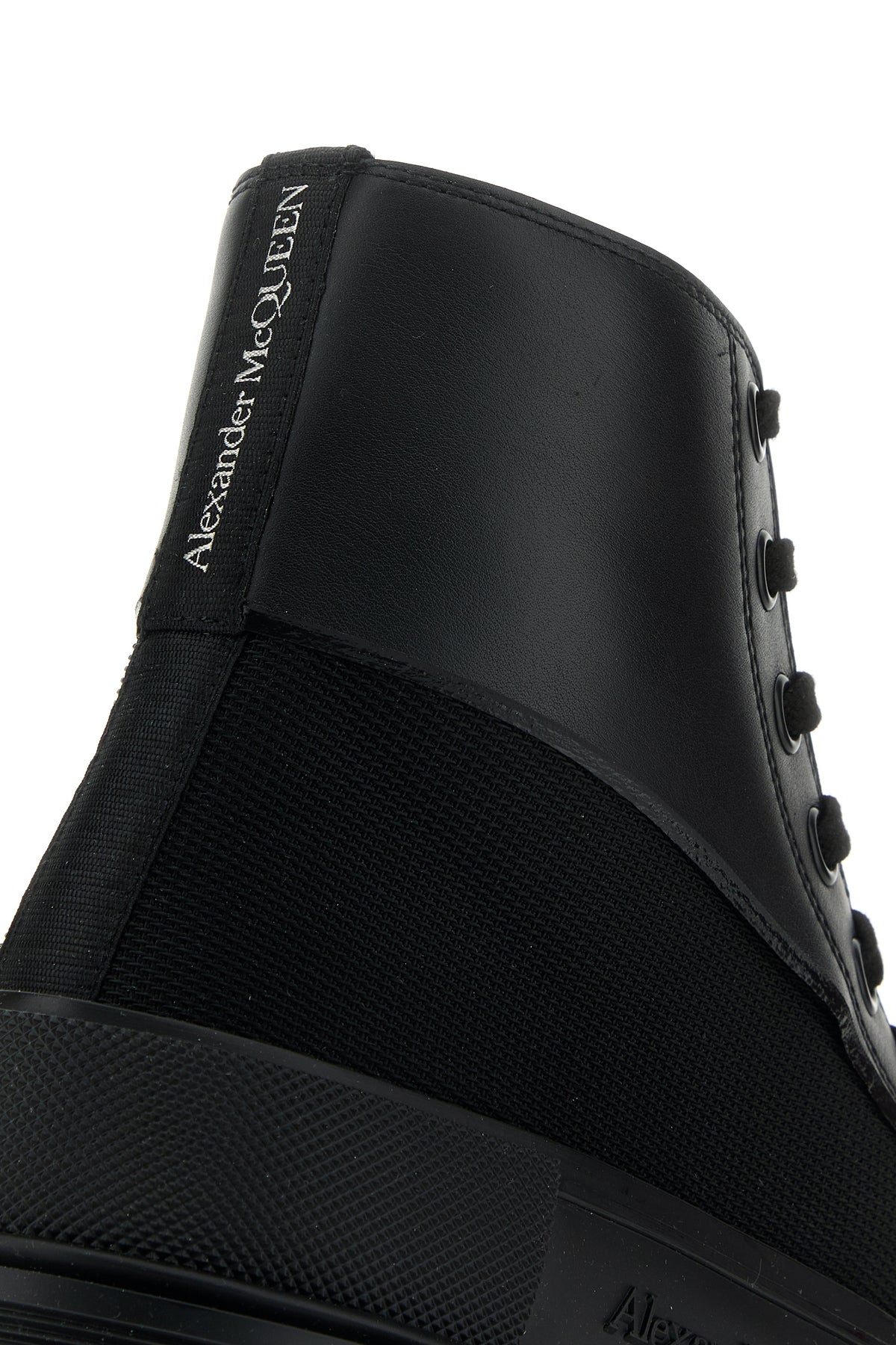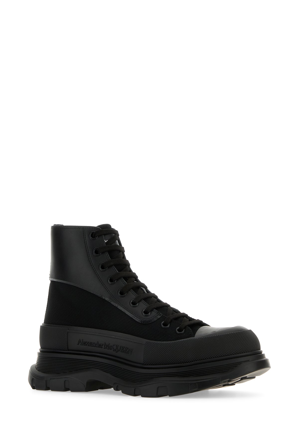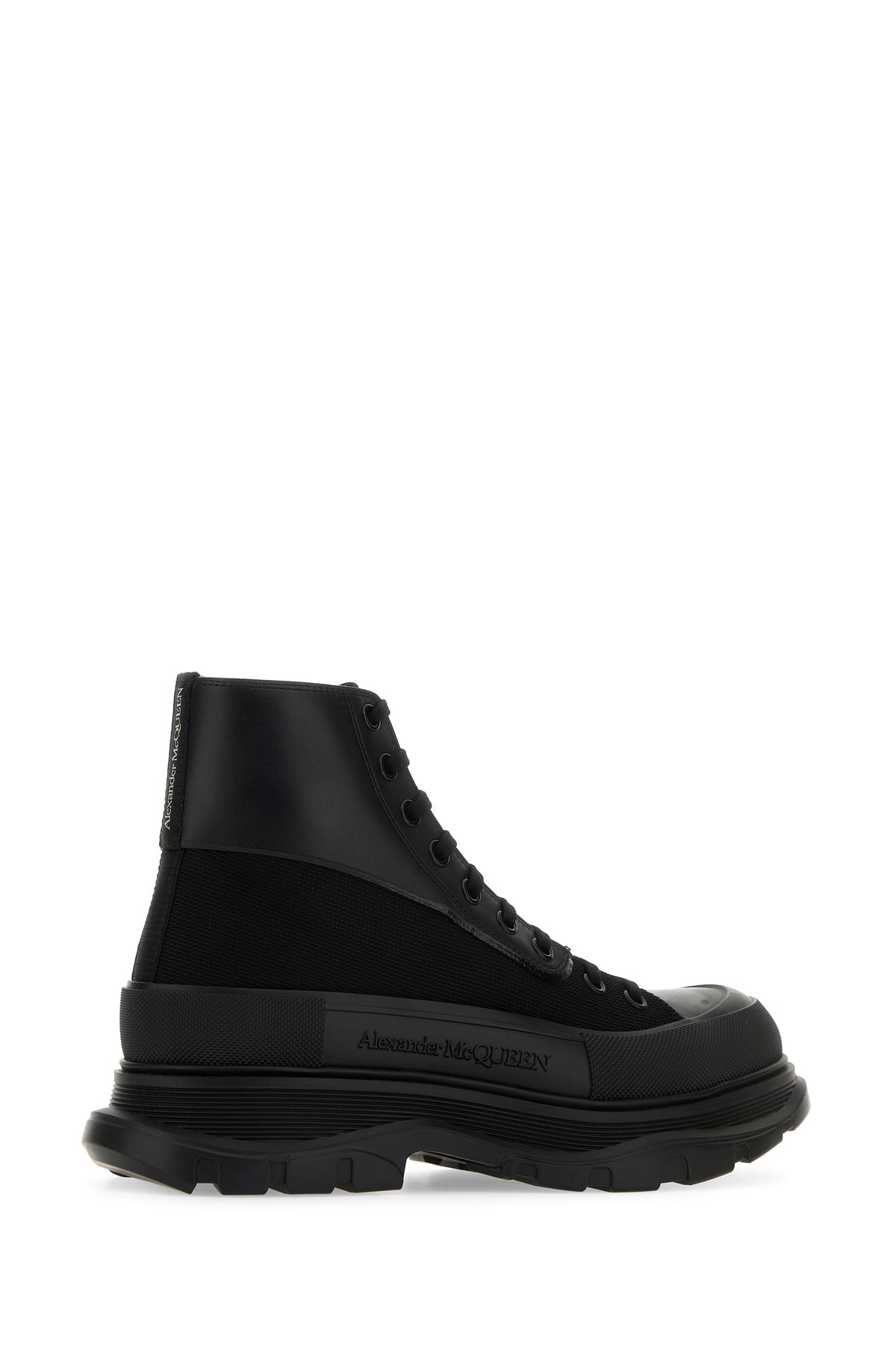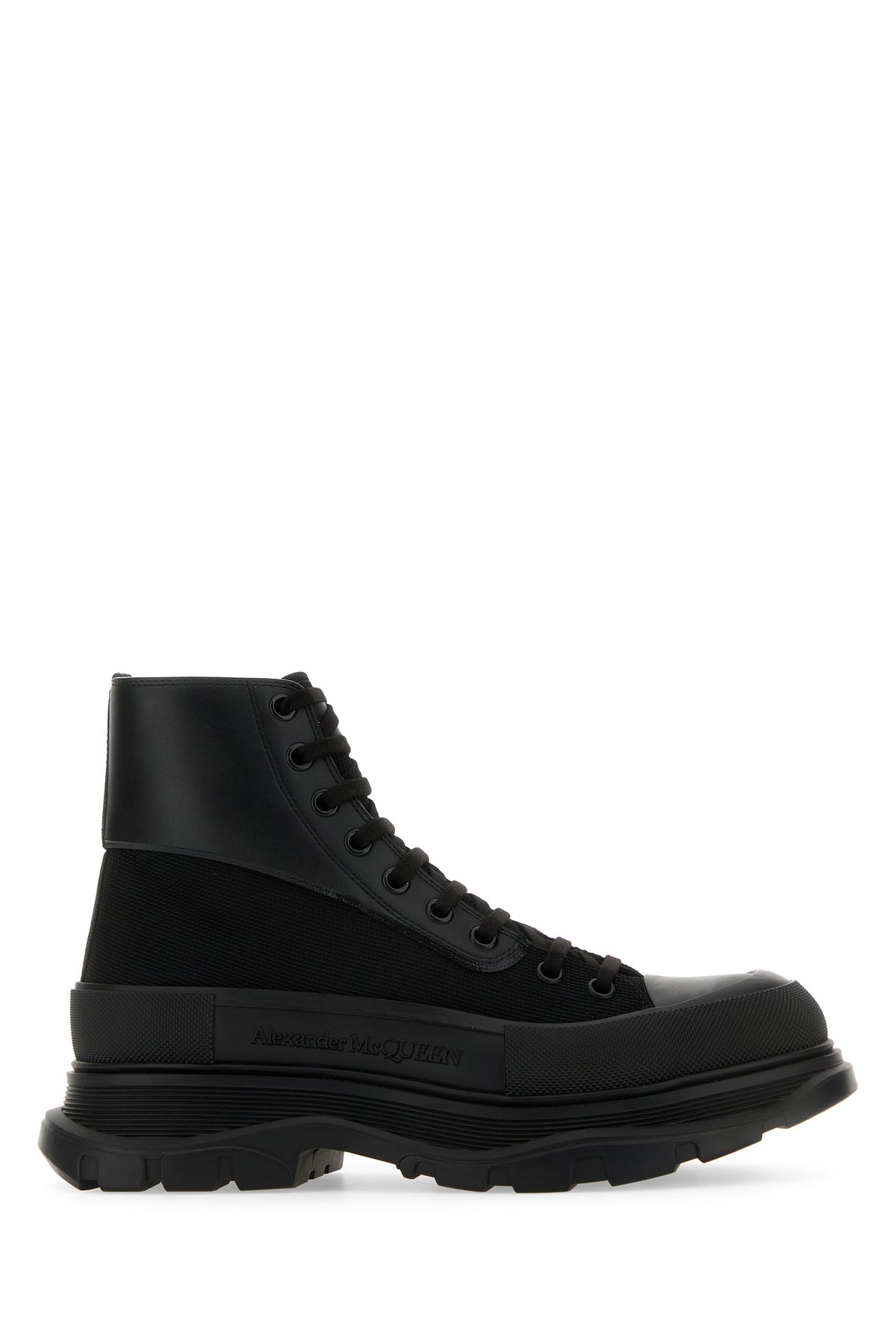 Ankle boots realized in canvas and leather with rubber insert on the hemline characterized by logo in relief on the side enriched by logoed label on the heel.