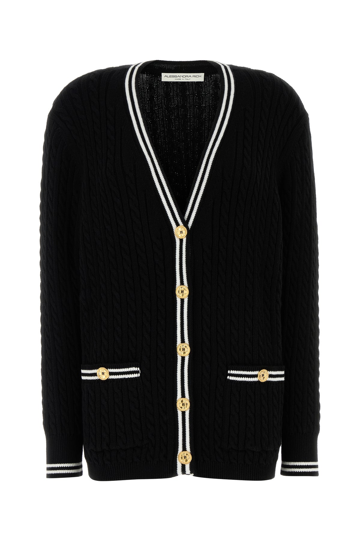 Knitted cardigan realized in pure cotton characterized by jewel buttons closure at the front.