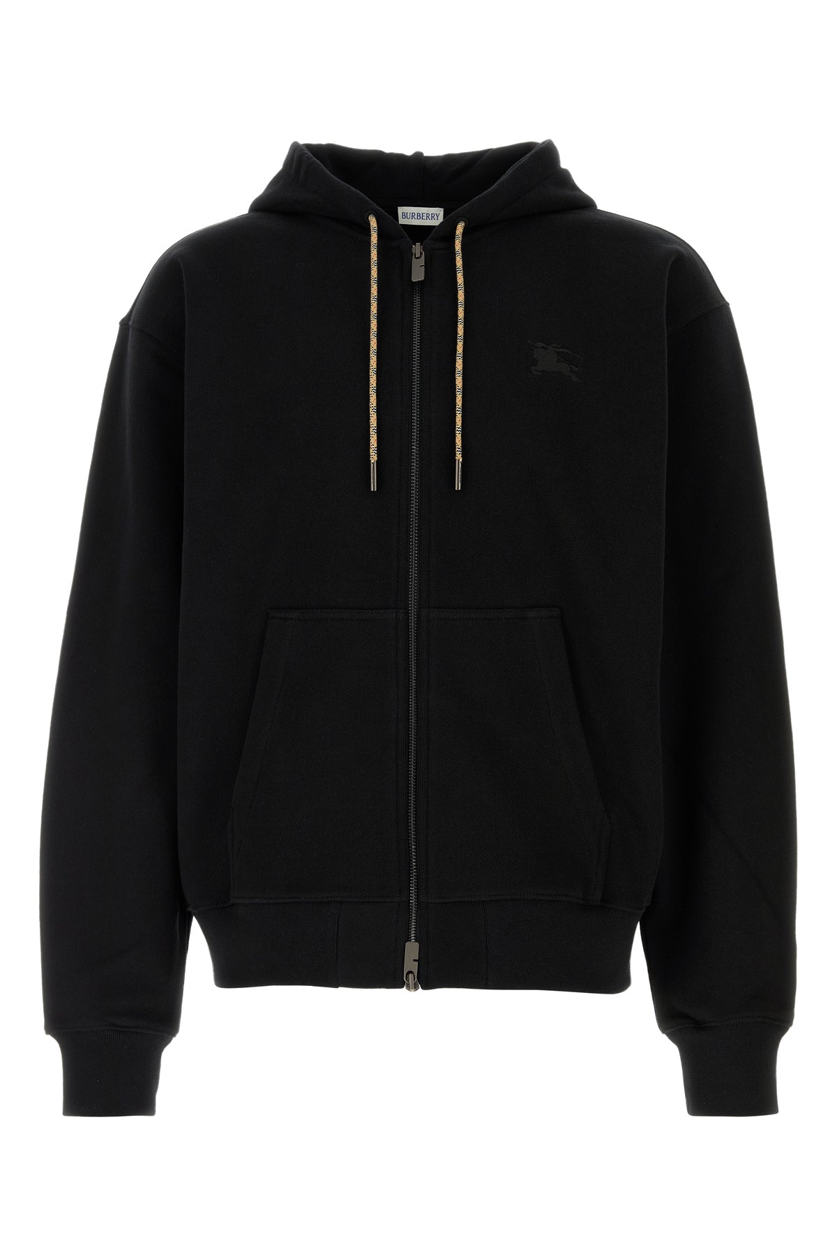Oversize sweatshirt realized in pure cotton characterized by tonal Equestrian Knight embroidery on the chest enriched by Burberry Check motif inserts on the sleeves.
