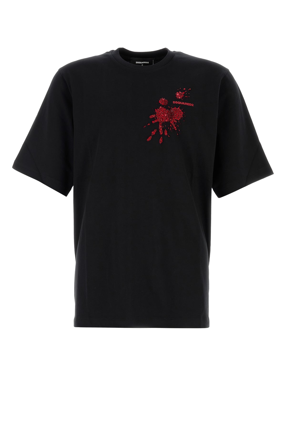 T-shirt realized in pure cotton characterized by contrasting printed logo enriched by peculiar patch with sequins on the chest.
