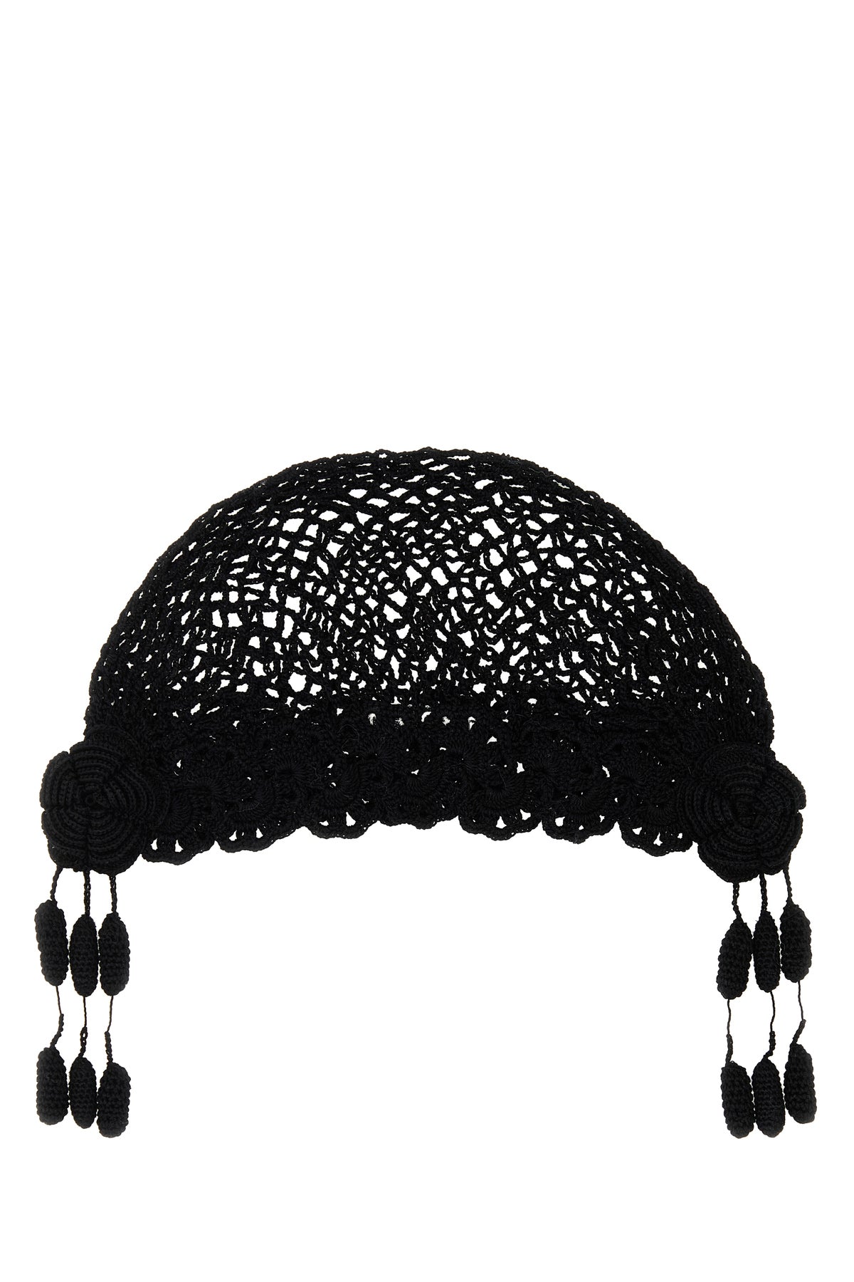 Beanie realized in pure cotton crochet characterized by floral embroideries on the hemline.
