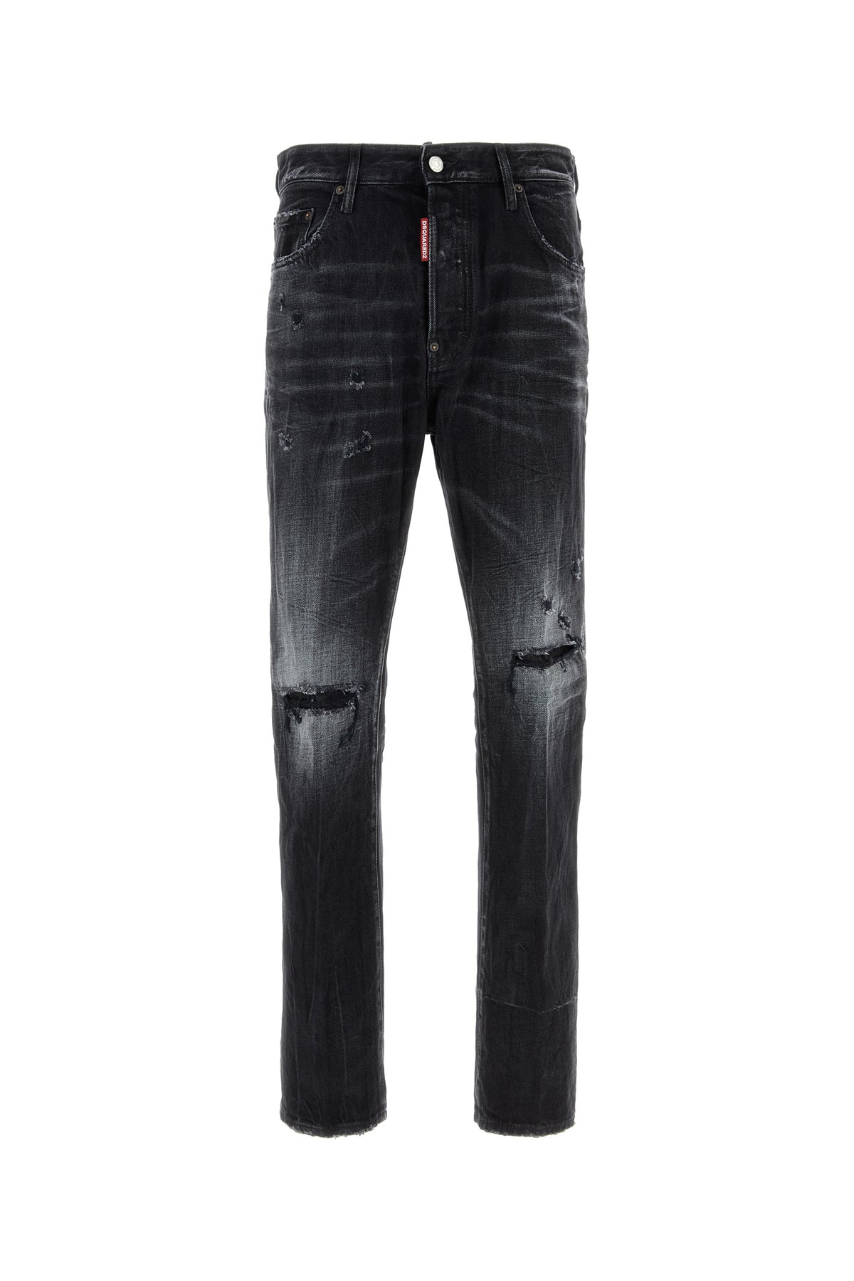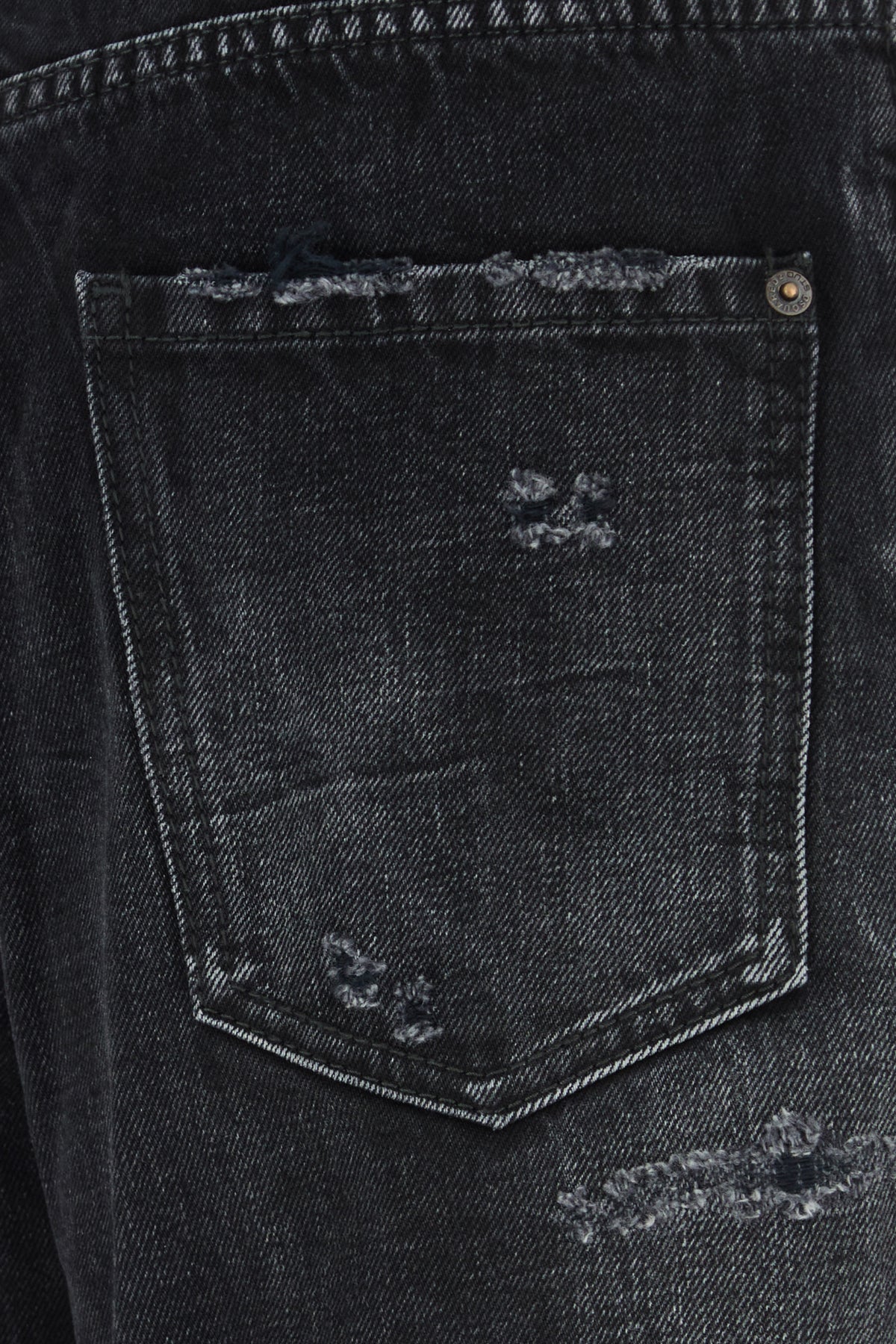 Jeans realized in stonewashed and distressed pure cotton denim enriched by contrasting logoed label at the back.