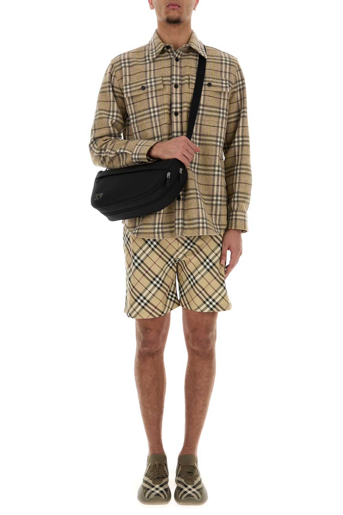 Crossbody bag realized in fabric enriched by metal equestrian Knight detail at the front.