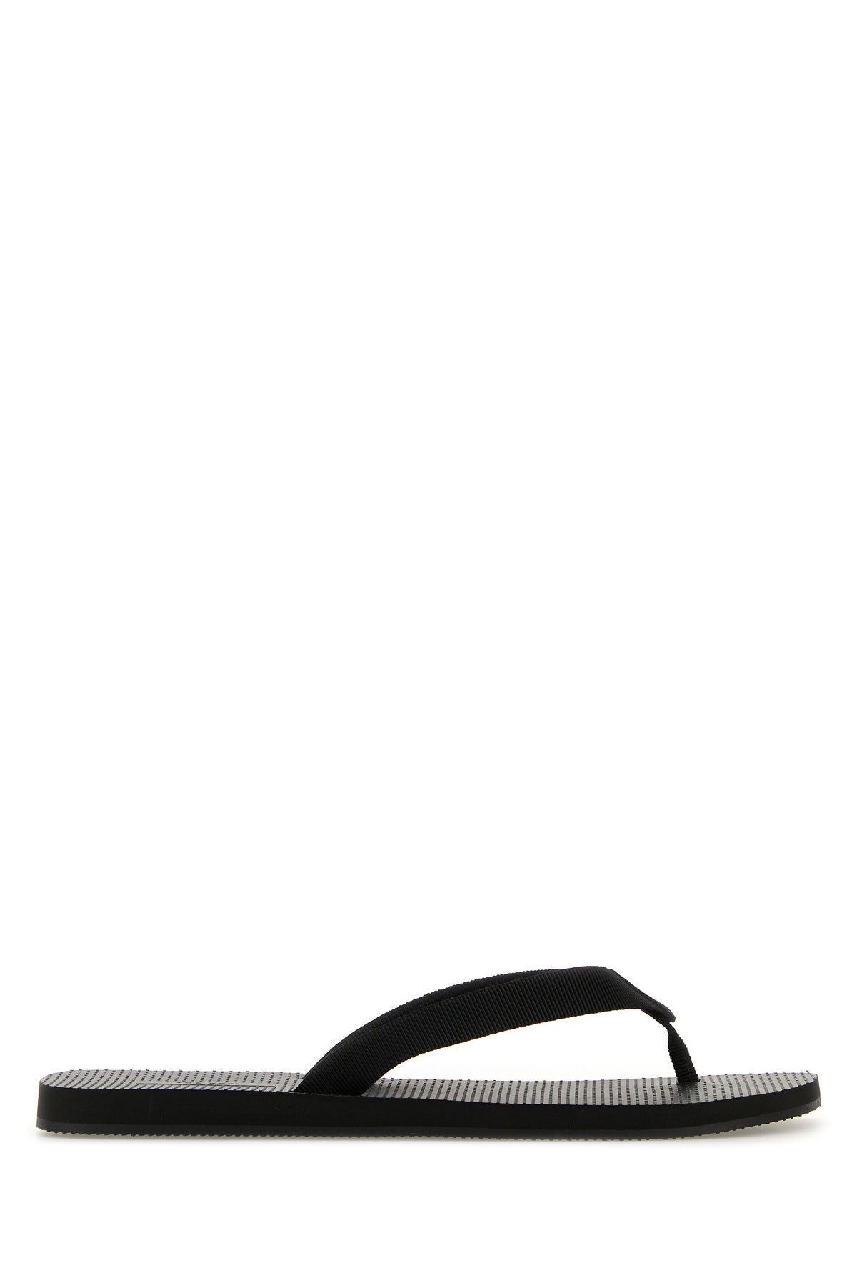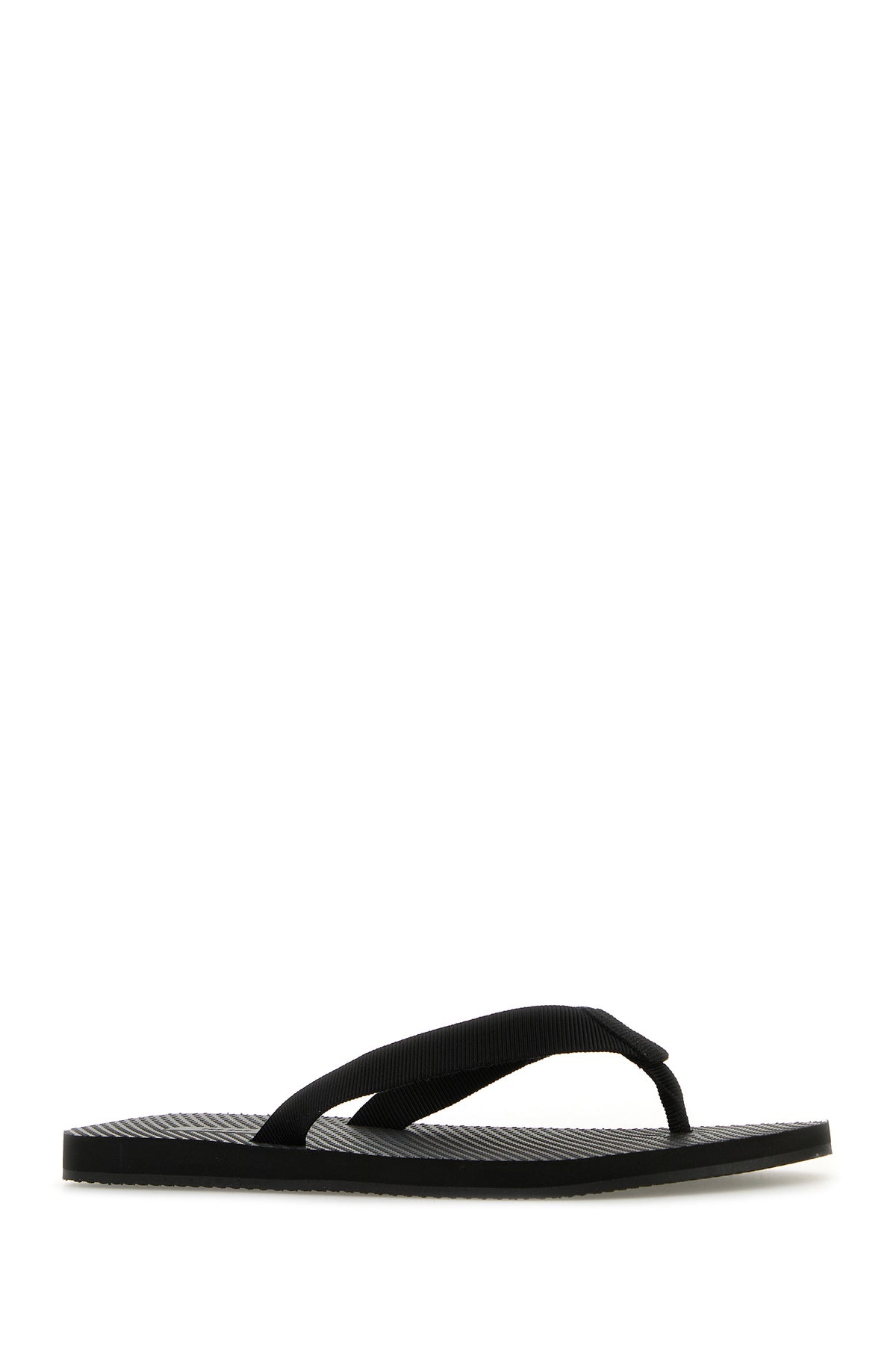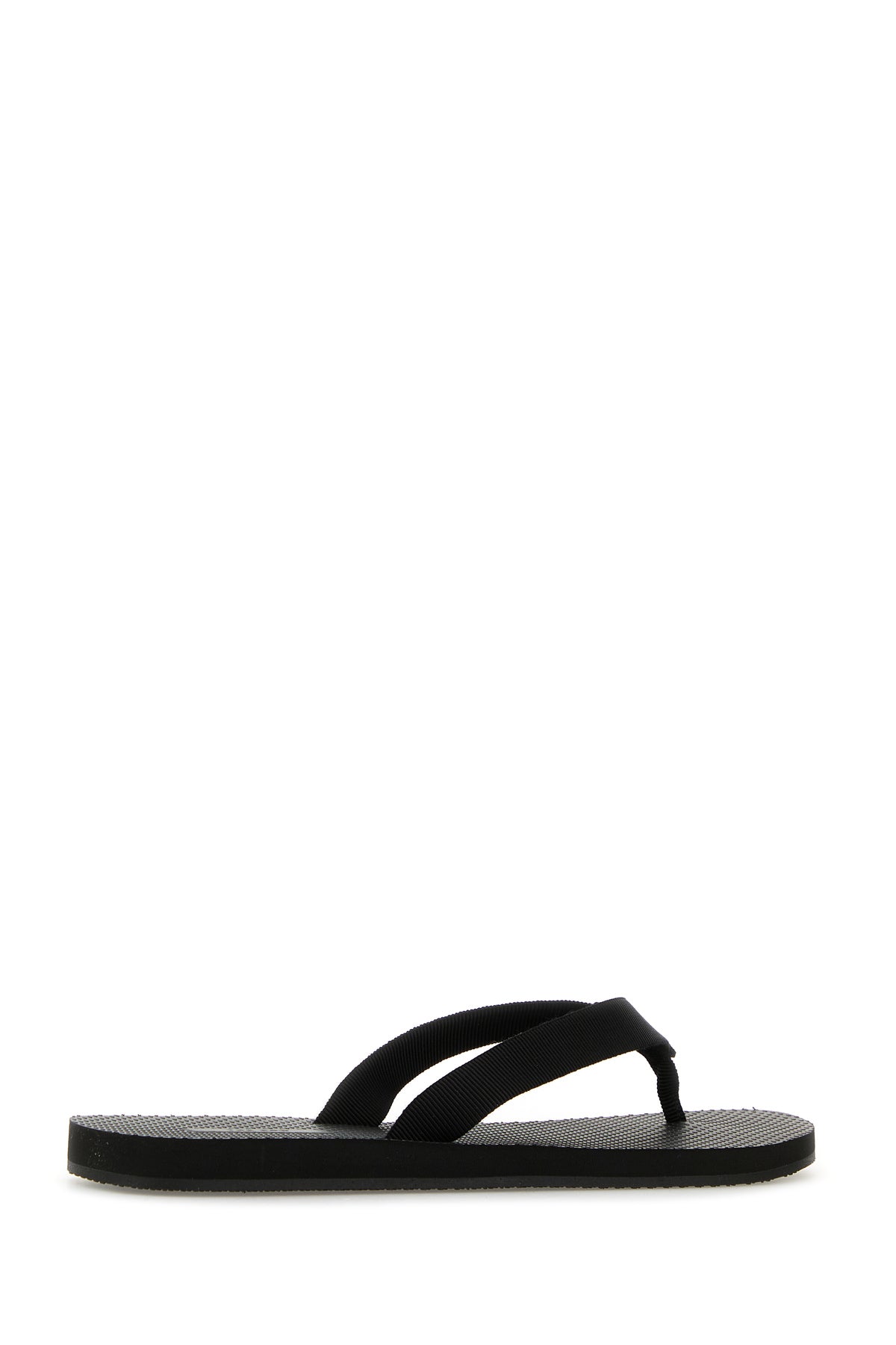 Thong slippers realized in fabric.