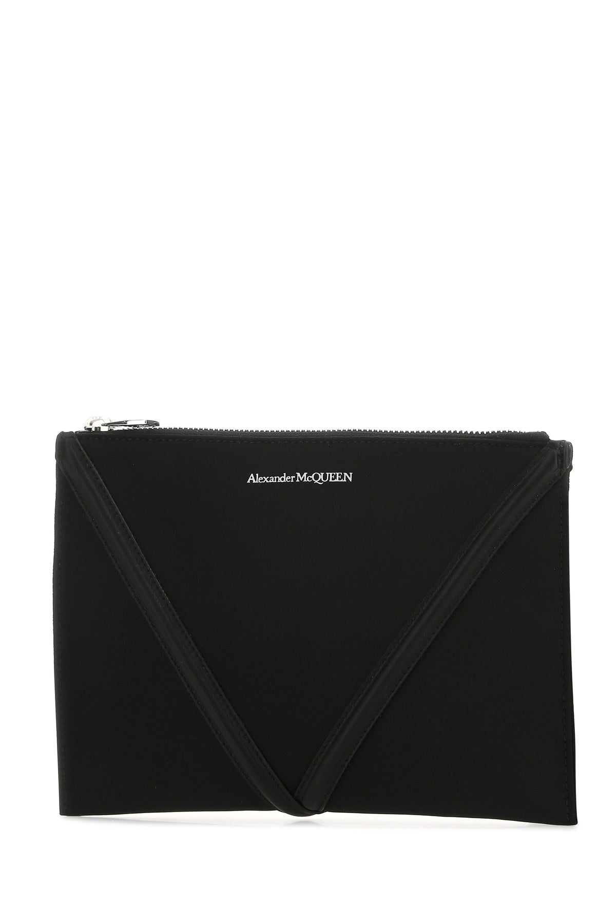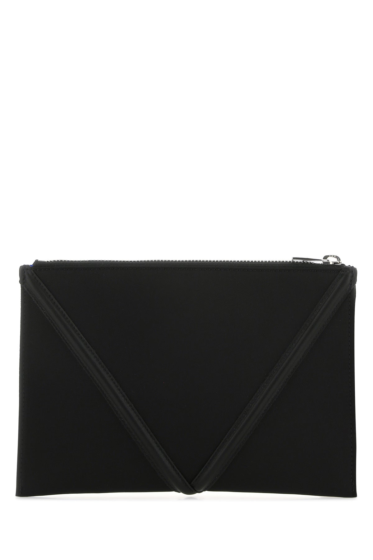 Pouch realized in fabric with tonal leather inserts characterized by printed logo at the front.