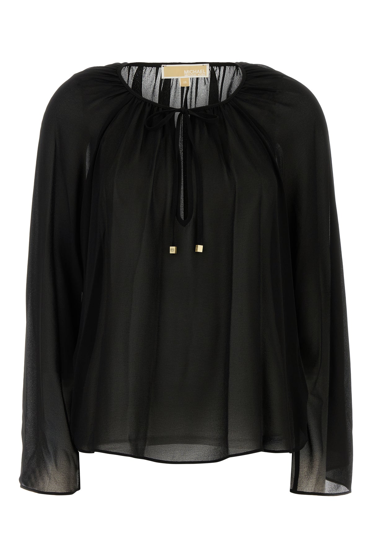 Blouse realized in georgette characterize by laces to tie on the V neckline.