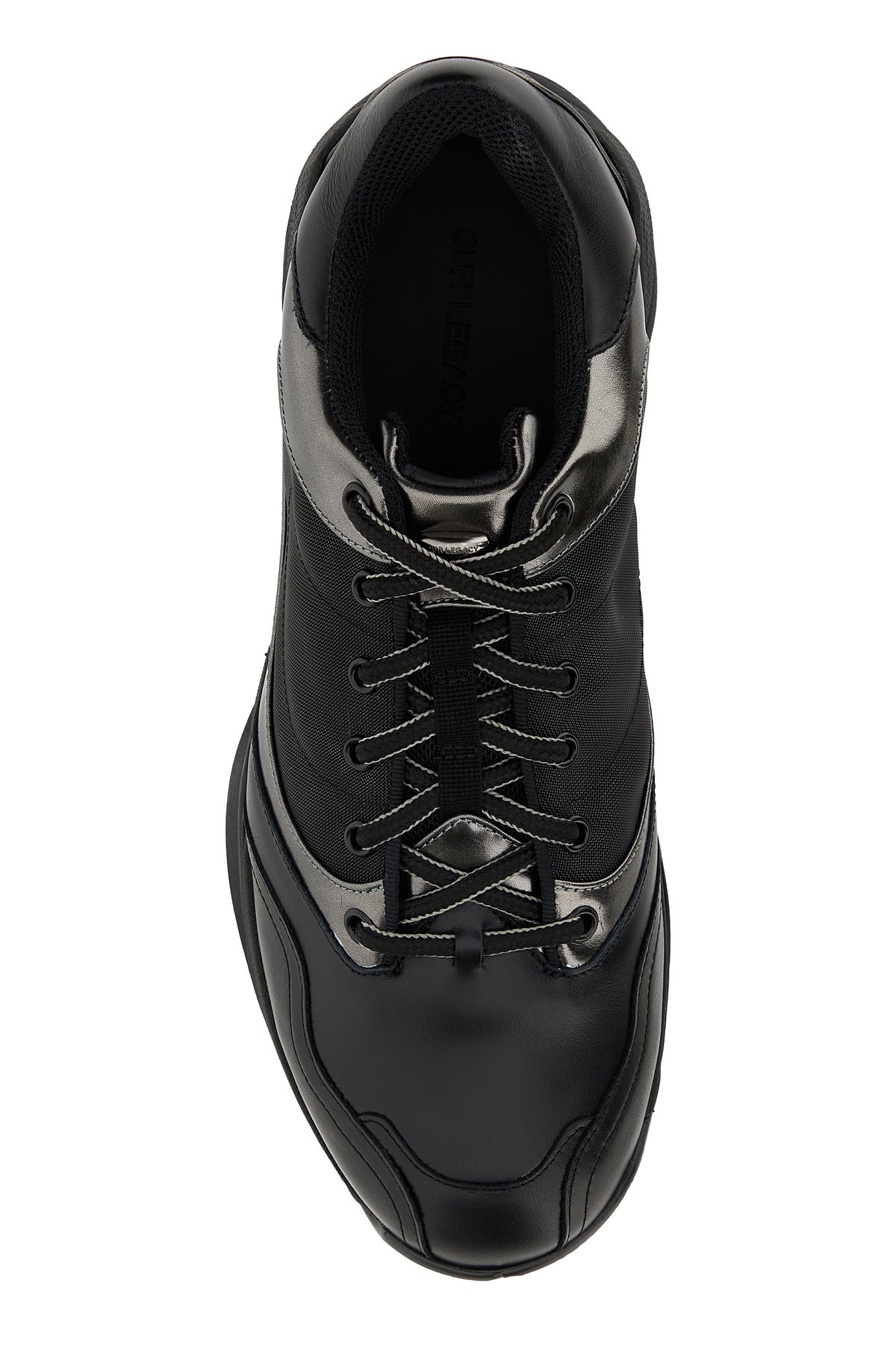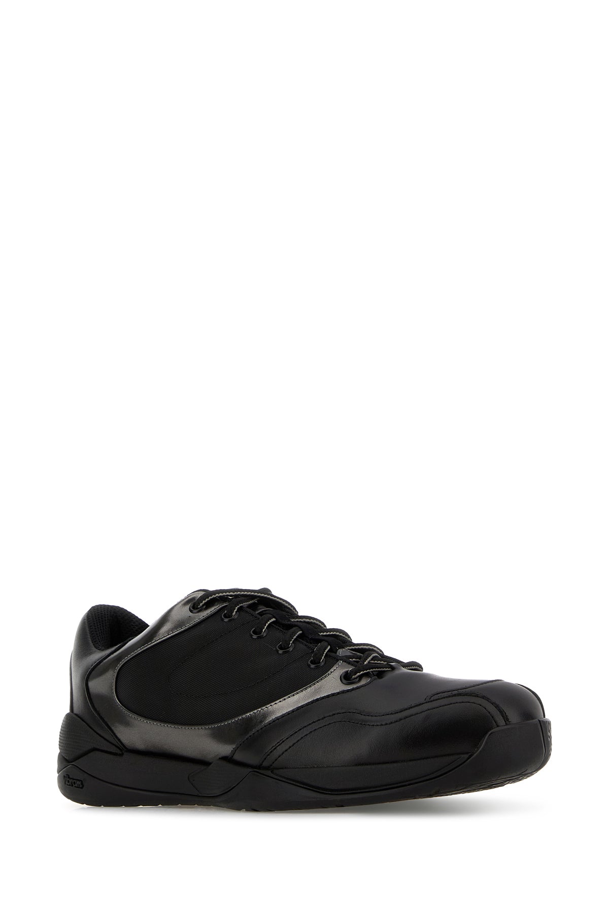 Sneakers realized in smooth leather and mesh with laminated leather inserts.