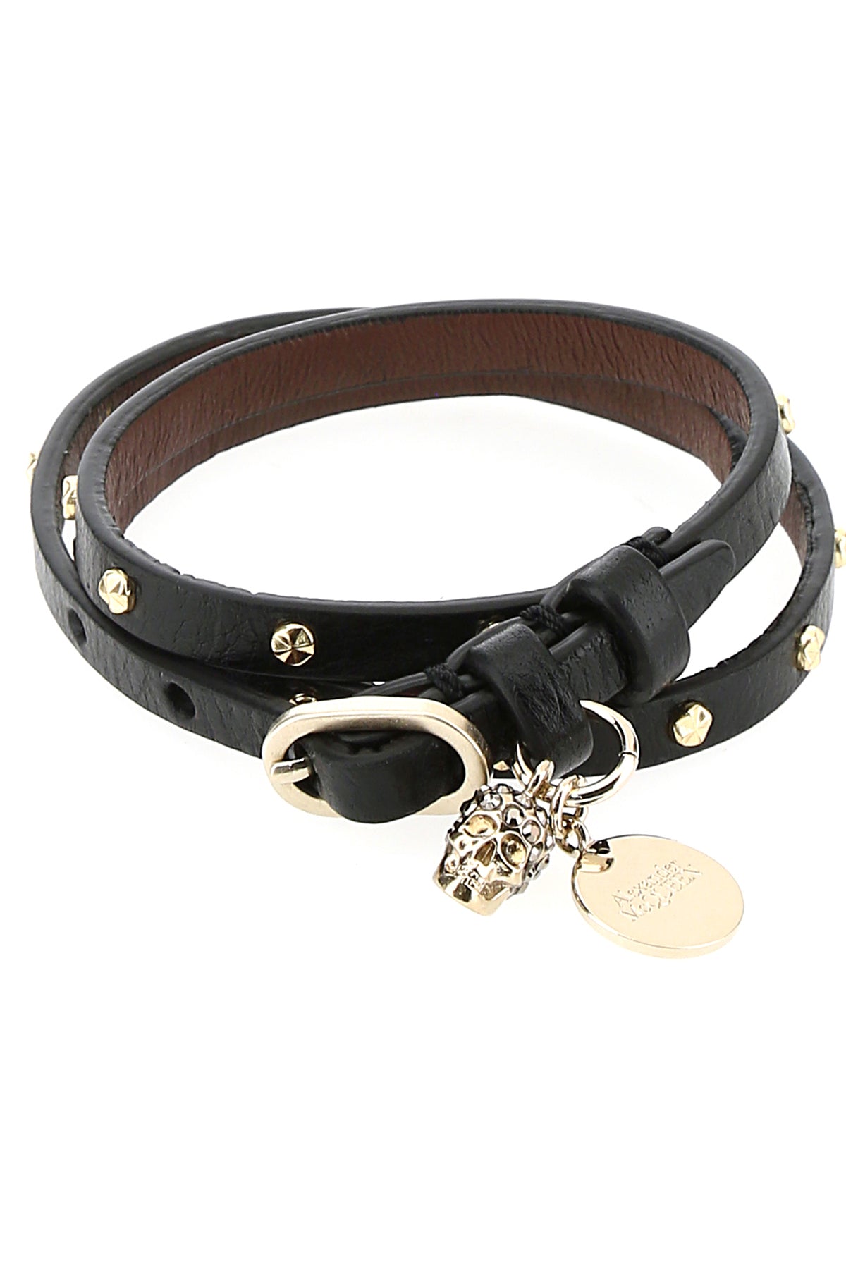 Bracelet realized in calf leather enriched by metal studs and logoed Skull accessory with rhinestones.