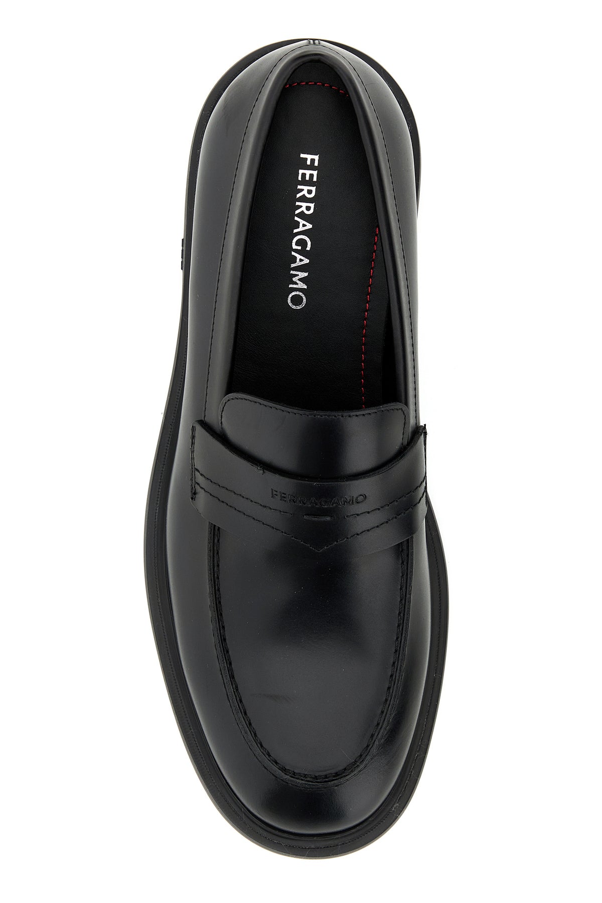 Loafers realized in smooth leather characterized by embossed logo on the vamp.