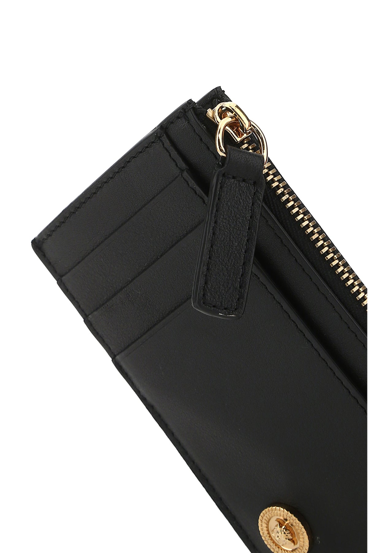 Card holder realized in pebble leather enriched by iconic metal Medusa Head detail at the front.