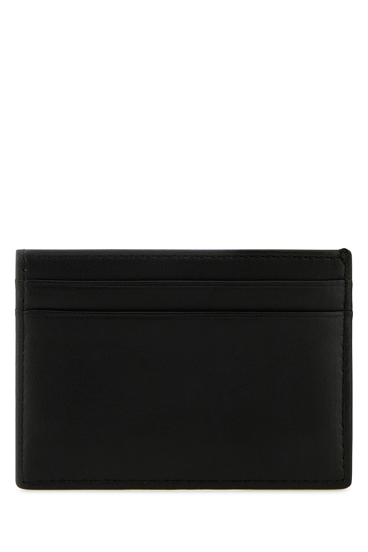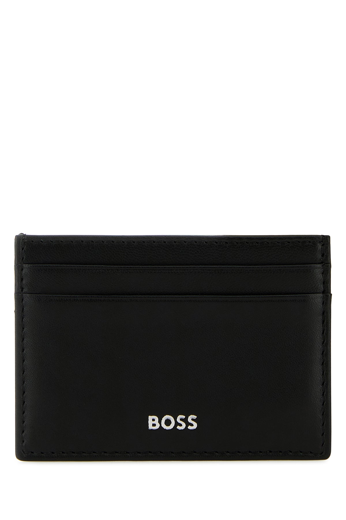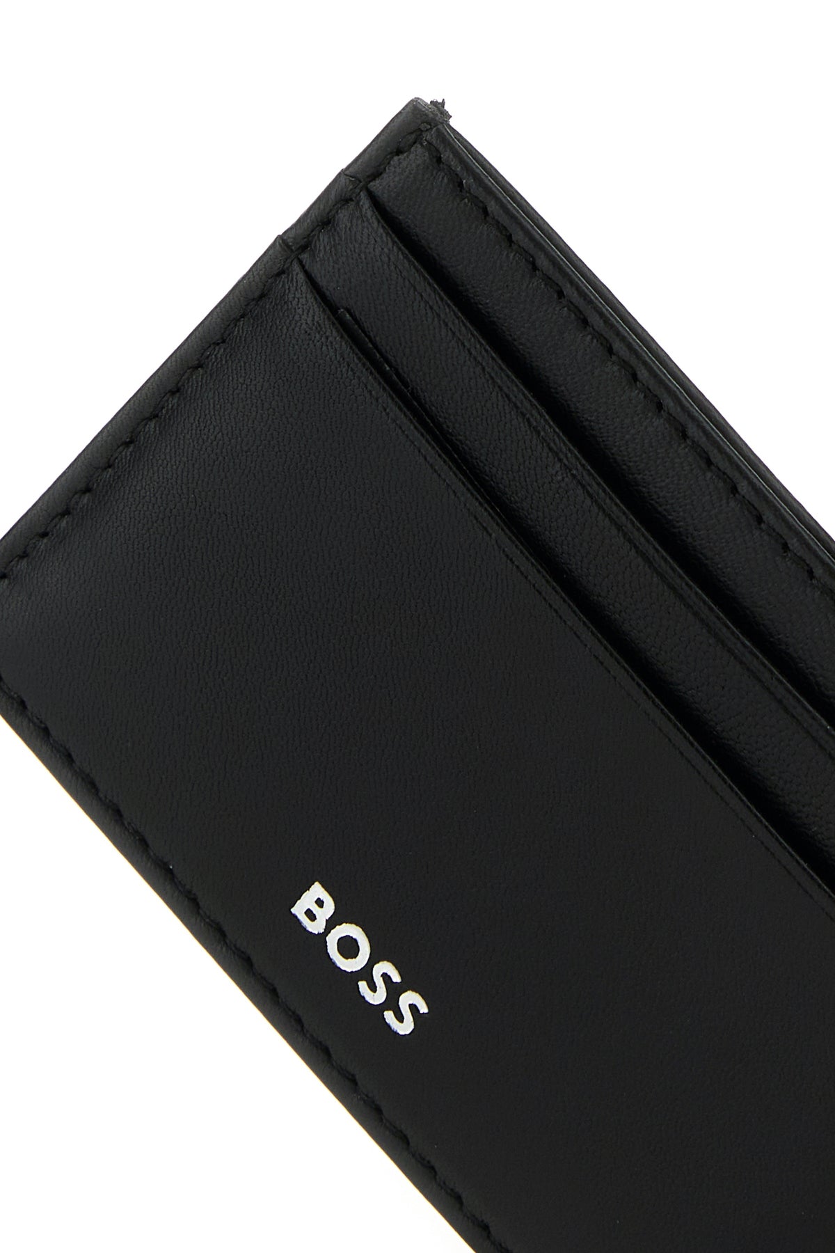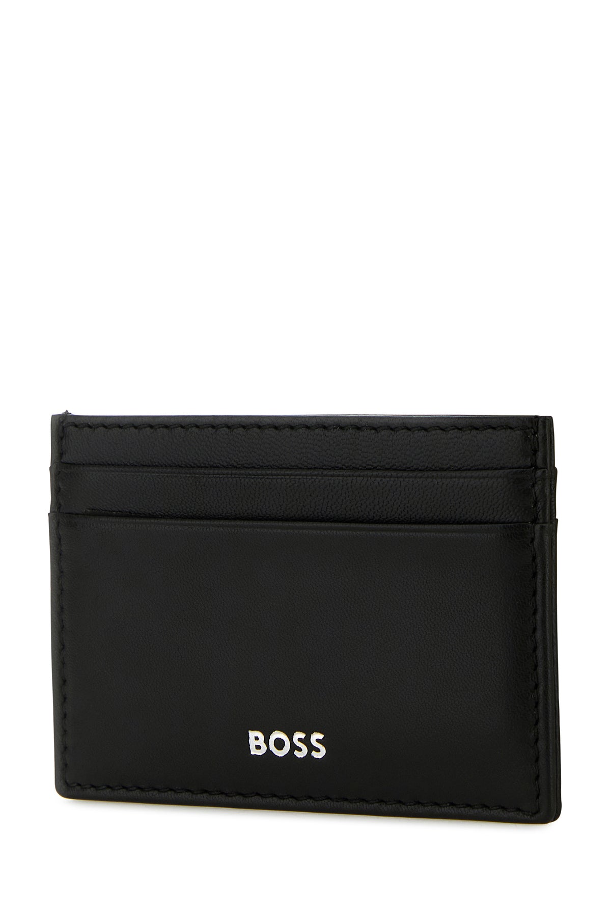 Card holder realized in smooth leather characterized by laminated printed logo at the front.